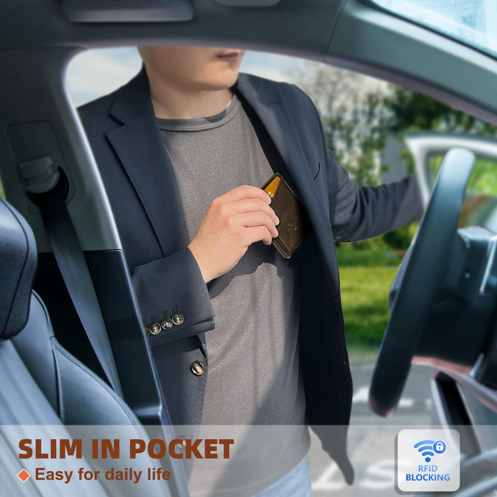 BULLIANT Men Wallet,Money Clip Wallet Slim For Gift Men 9Cards-Metal Credit Card Case in Magnetic Leather Flip
