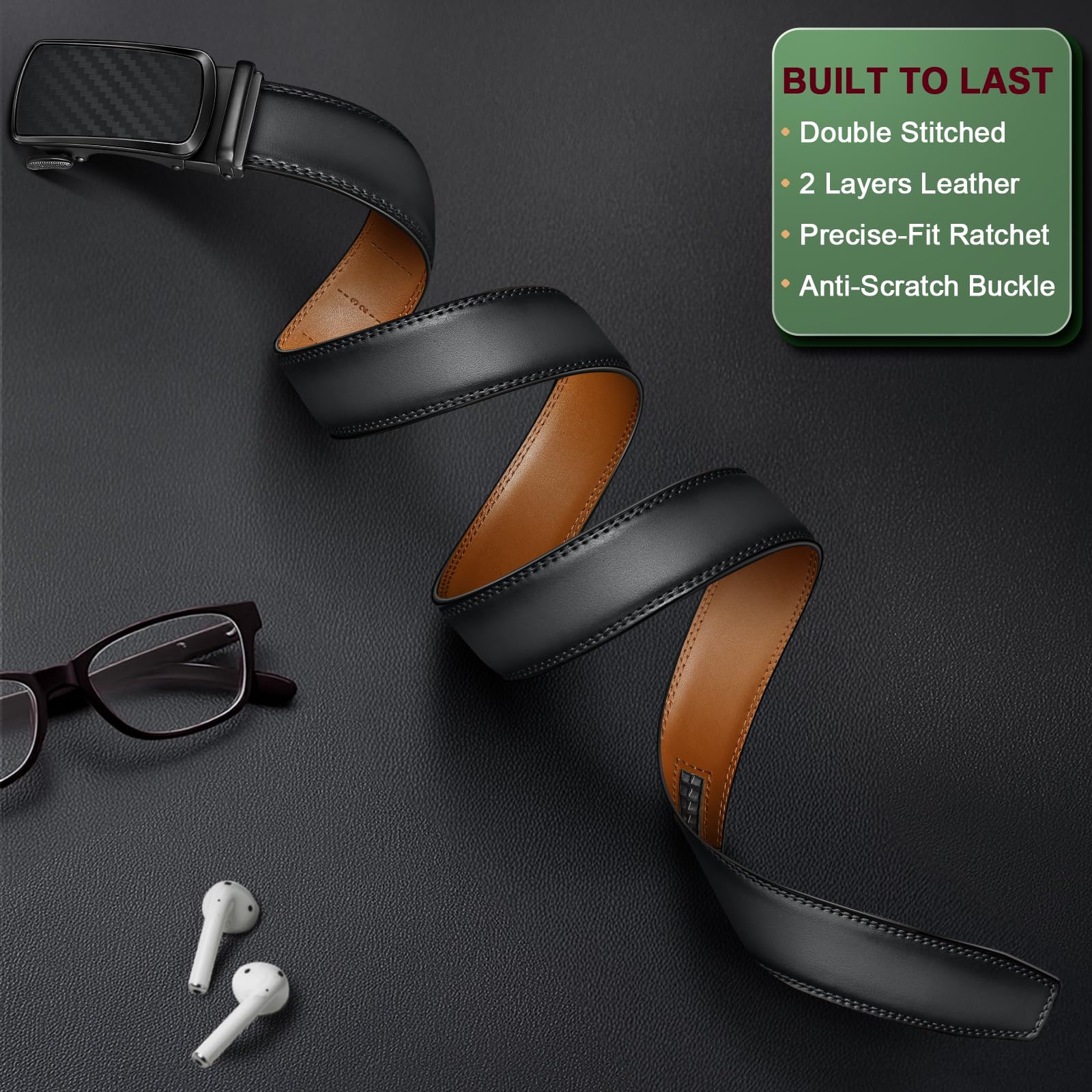 BULLIANT Men's Belt,Brand Ratchet Belt Of Genuine Leather For Gift Men Dress,Size Customized(Dark Gray,30"-36" Waist Adjustable)