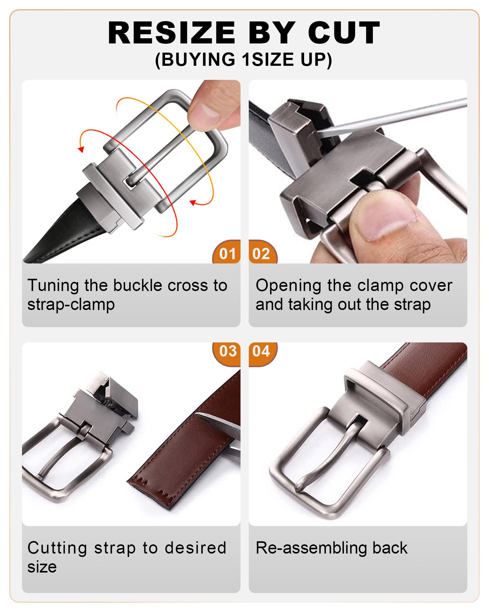 • SIZE CUSTOMIZING -- For best fit, we suggest you to buy 1size(2”) larger than your waist! This Bulliant leather belt is designed with Cut-For-Fit mechanism,the strap can be easily remove from buckle to cut and settle back. If unsure about your waist size, simply buy even larger and you can resize it later to desired length;