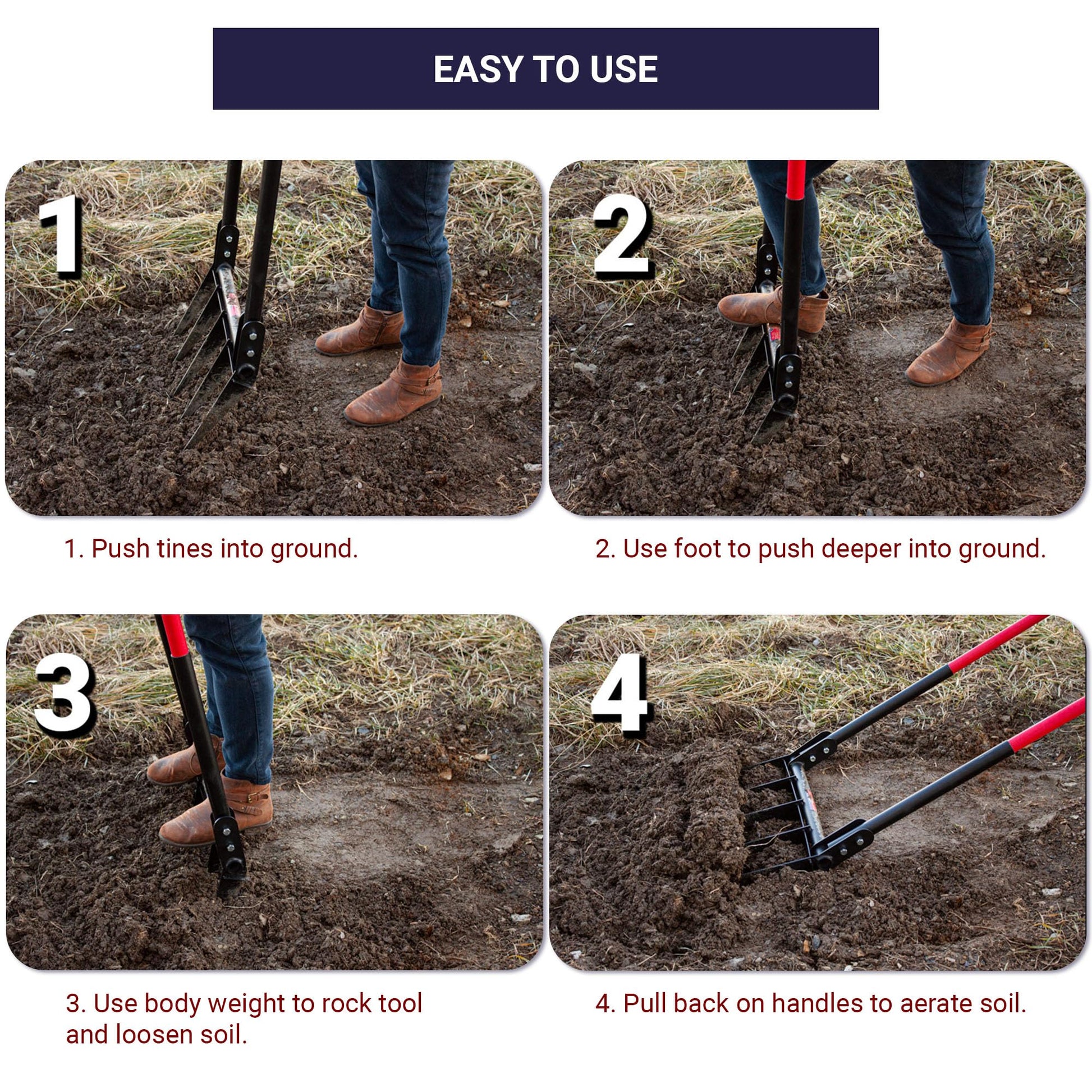 The Bully Tools Broadfork has been re-engineered for optimal power and performance. 10 gauge steel blades power through soil and the high strength fiberglass handles provide superior durability.