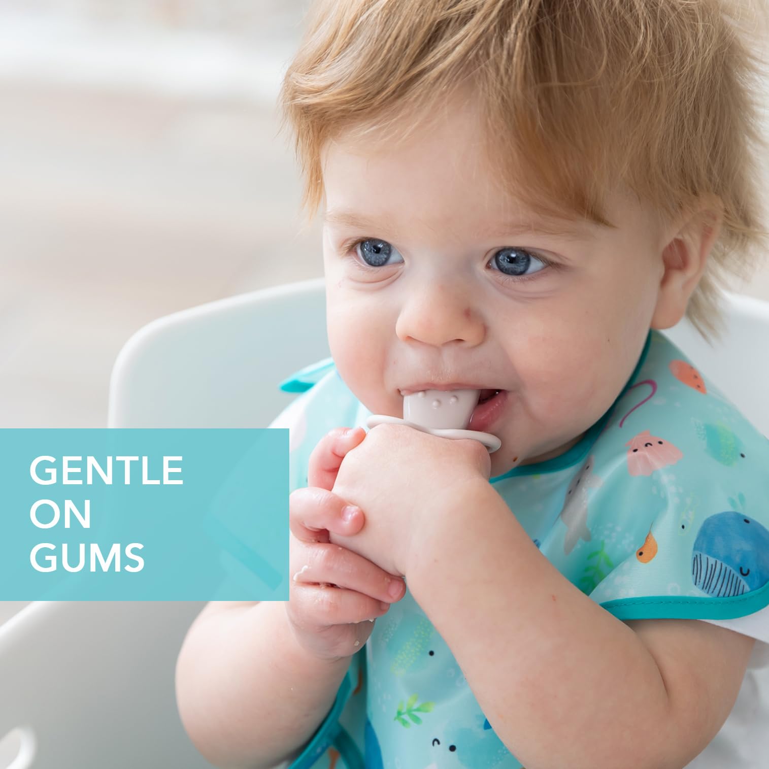 Bumkins Baby Utensils Set, Chewtensils Silicone Spoons for Dipping, Self-Feeding, Baby Led Weaning, Trainer Learning, First Stage Eating, Soft Practice Fork and Spoon, Babies 6 Months, Sand Beige