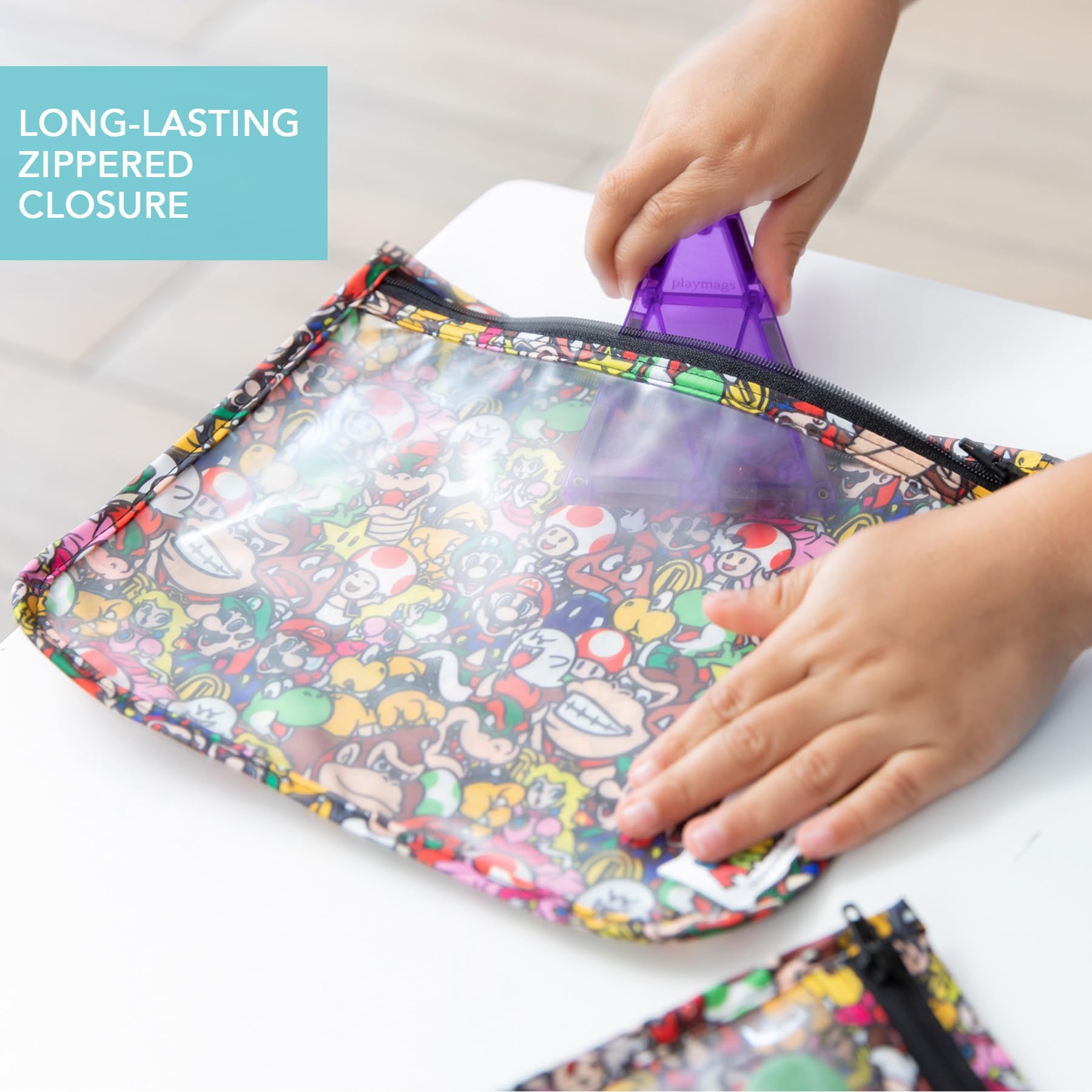 Bumkins Travel Bag, Toiletry, TSA Approved Pouch, Zip Bag, Quart Size Airline Compliant, Clear-Sided, Baby, Diaper Bag Organization, Makeup, Accessories, Packing, Set of 3 Sizes, Nintendo Super Mario