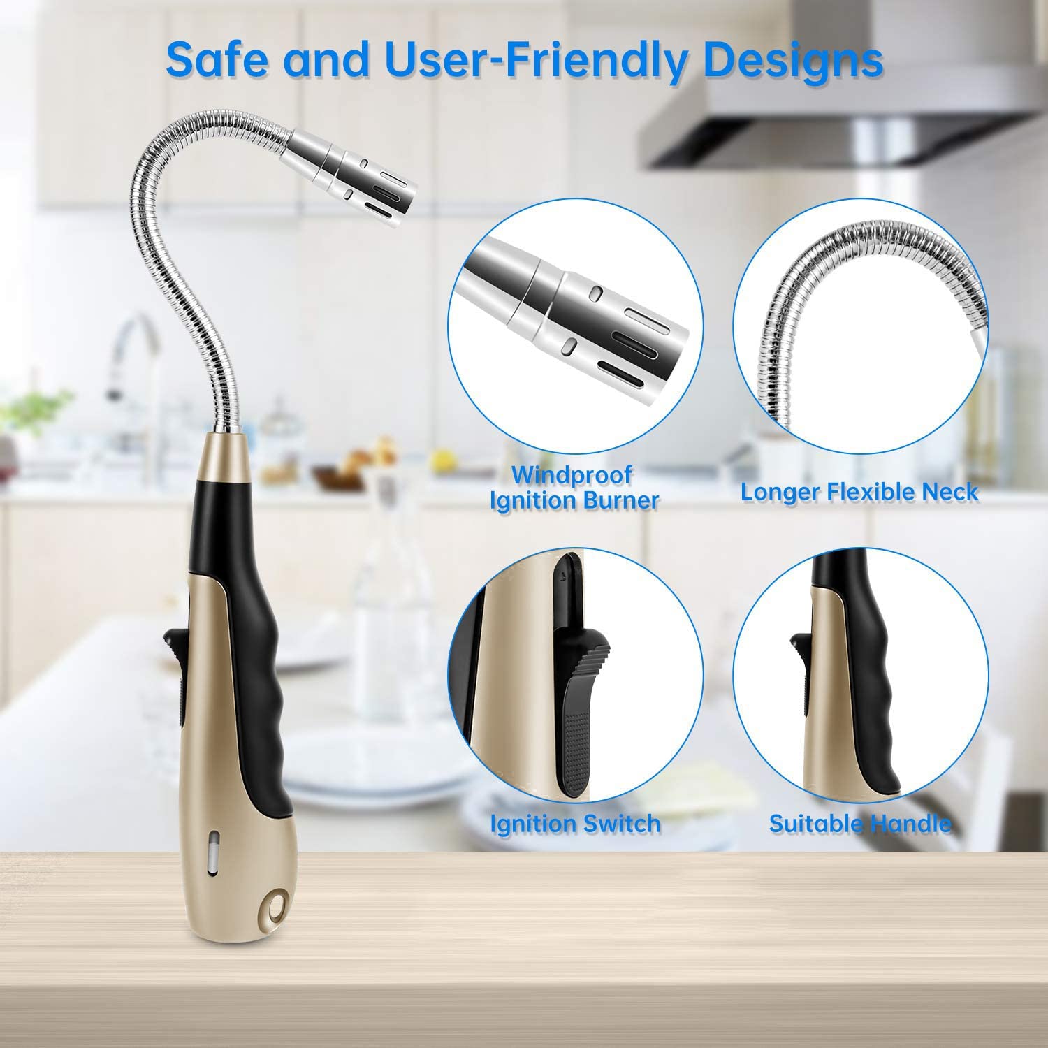 Flexible Long Neck 360 Rotation: The lighter with a 360 degree flexible long neck protects you from burning your hand and can be rotated or bend to different angles at will. You can use it in various scenarios like BBQ, grill, fireplace, etc