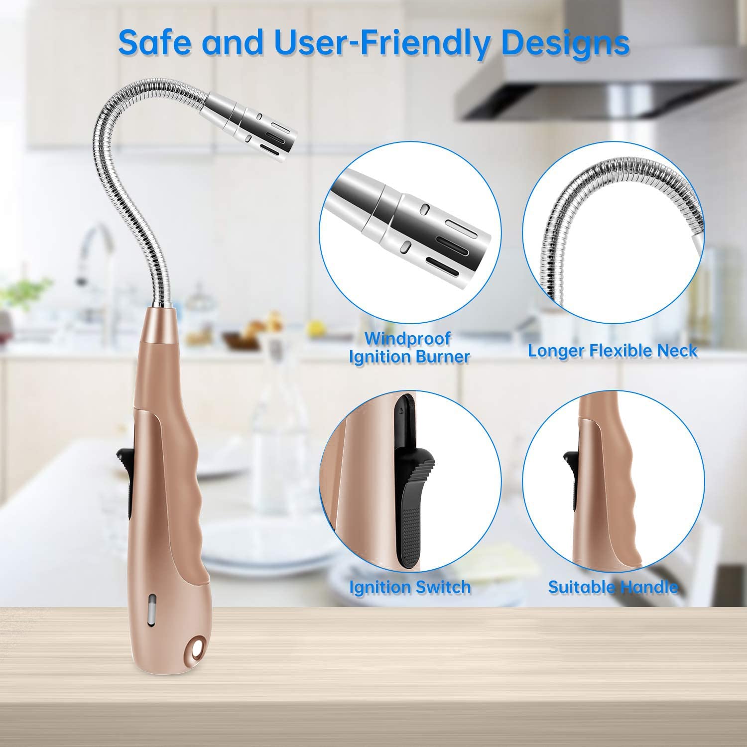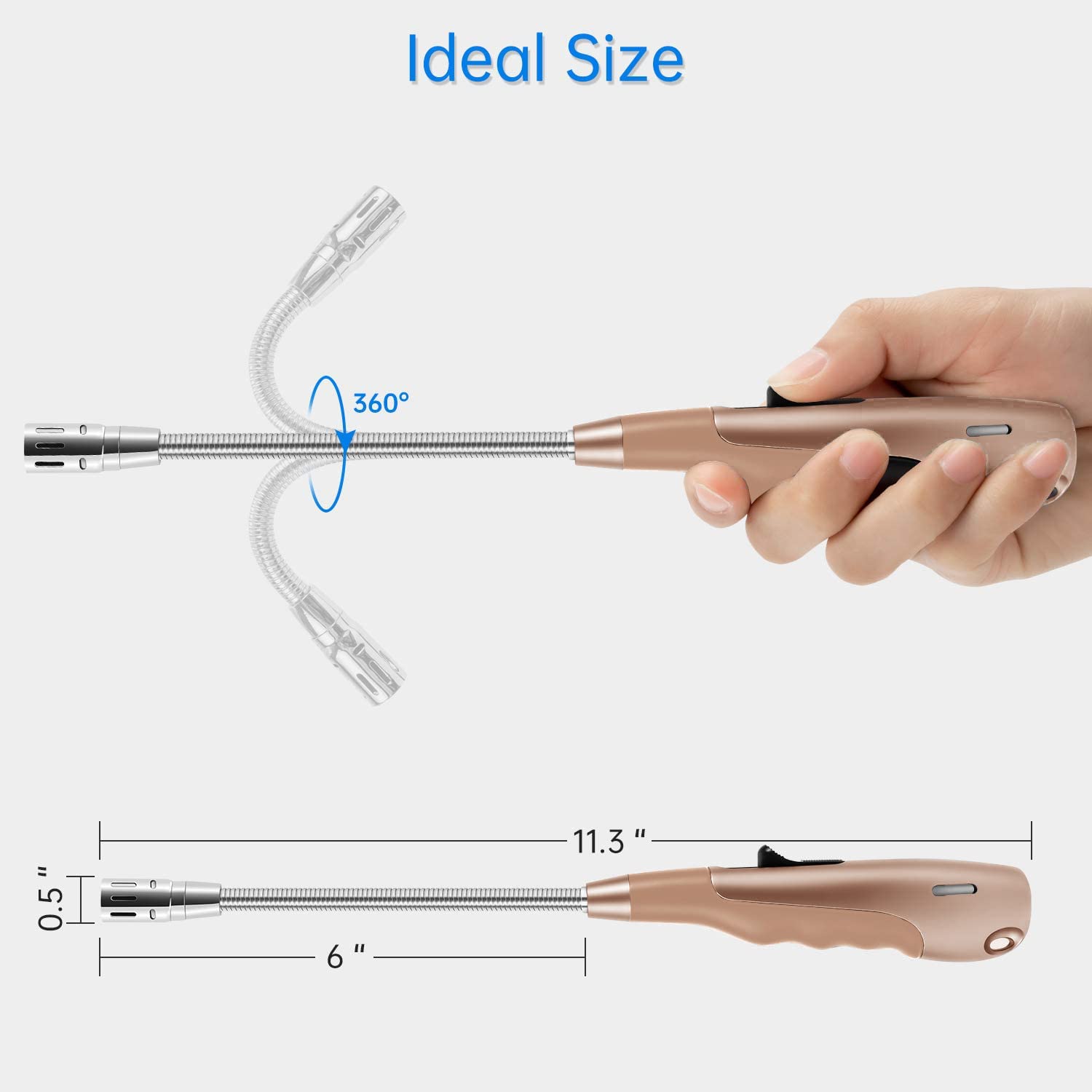 Flexible Long Neck and 360° Rotation: The lighter with a 360° flexible long neck protects you from burning your hand and can be rotated or bend to different angles at will. You can use it in various scenarios like BBQ, grill, fireplace, etc