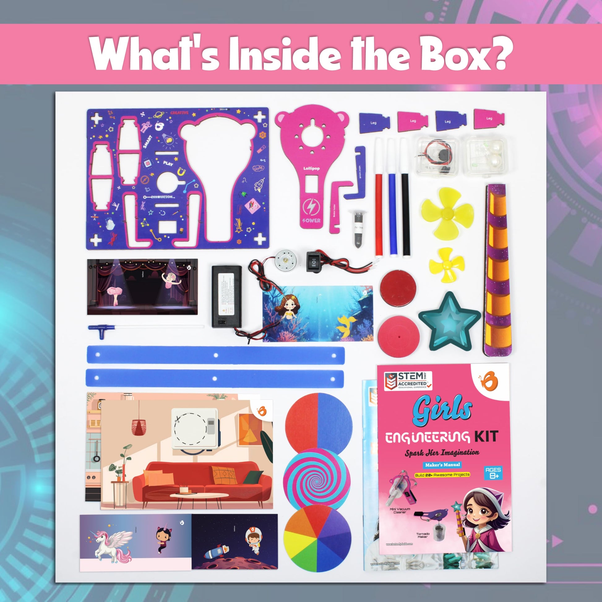 • ⭐ [ Empowering girls to become world’s PROBLEM SOLVERS ] - We hope to achieve this with our product, Girls Mini Engineering Kit, designed for girls ages 8-12+ to learn about STEAM (science, technology, engineering, art, and math) fundamentals through activities geared towards girl interests and taught in ways in which girls typically learn best.