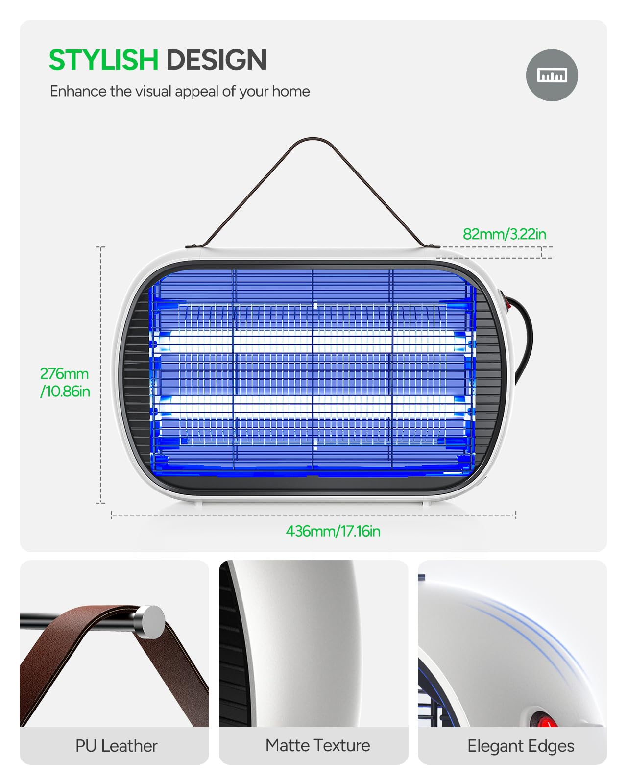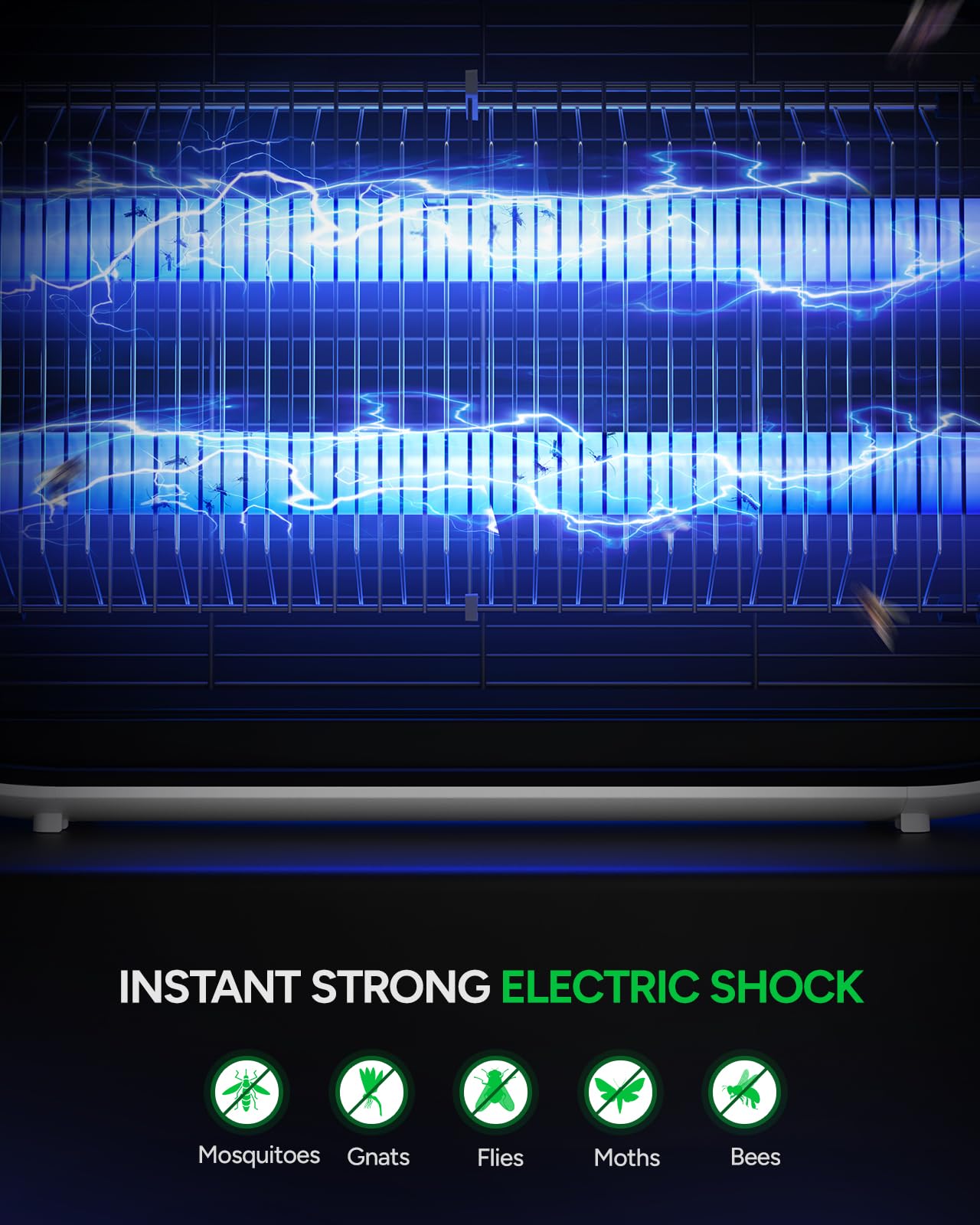 • High-Efficiency Indoor BugZapper: The 20W lamps of this bug zapper emit light to attract mosquitoes, flies, fruit flies, moths, wasps, etc. When the power grid comes into contact with flying bugs, it will release a high voltage, quickly electrocuting the attracted flying bugs to death. To get a better attraction effect, it is recommended to use the mosquito zapper at night or in a dark environment.