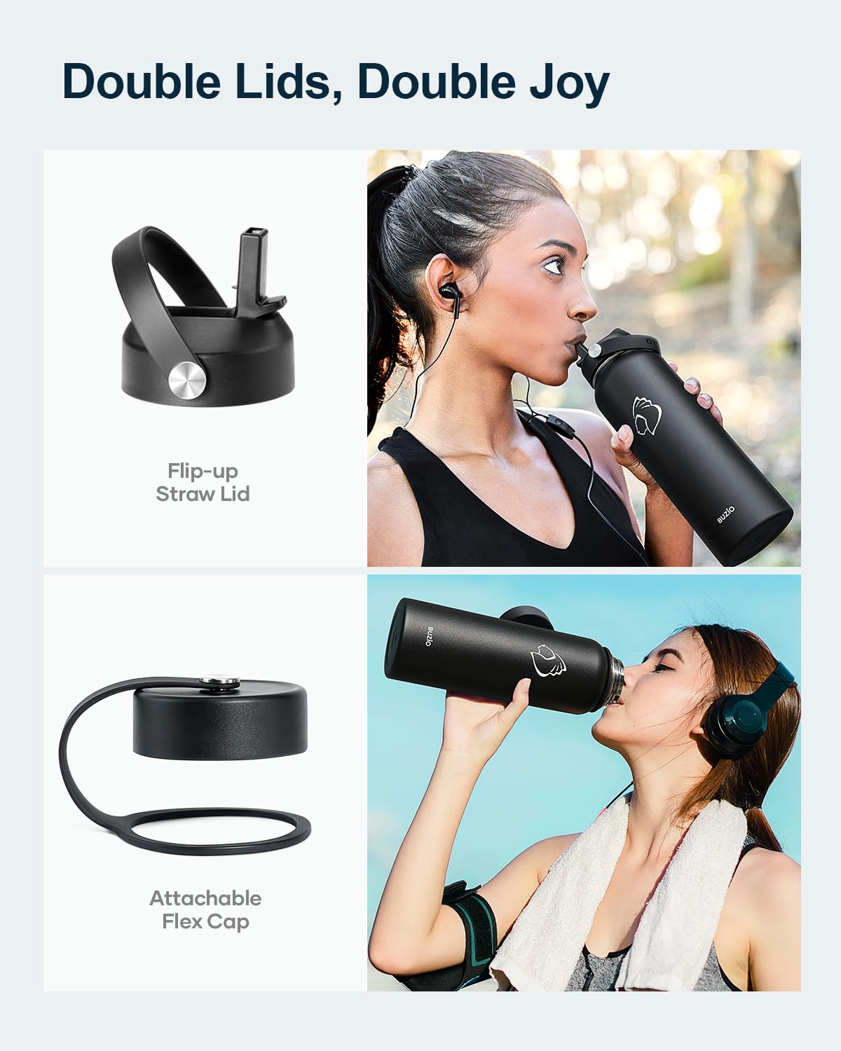 • User-friendly Design: With the BUZIO powder-coat technology & Wide mouth (2.16 inches), your BUZIO bottle is easy for gripping, cleaning and ice-filling