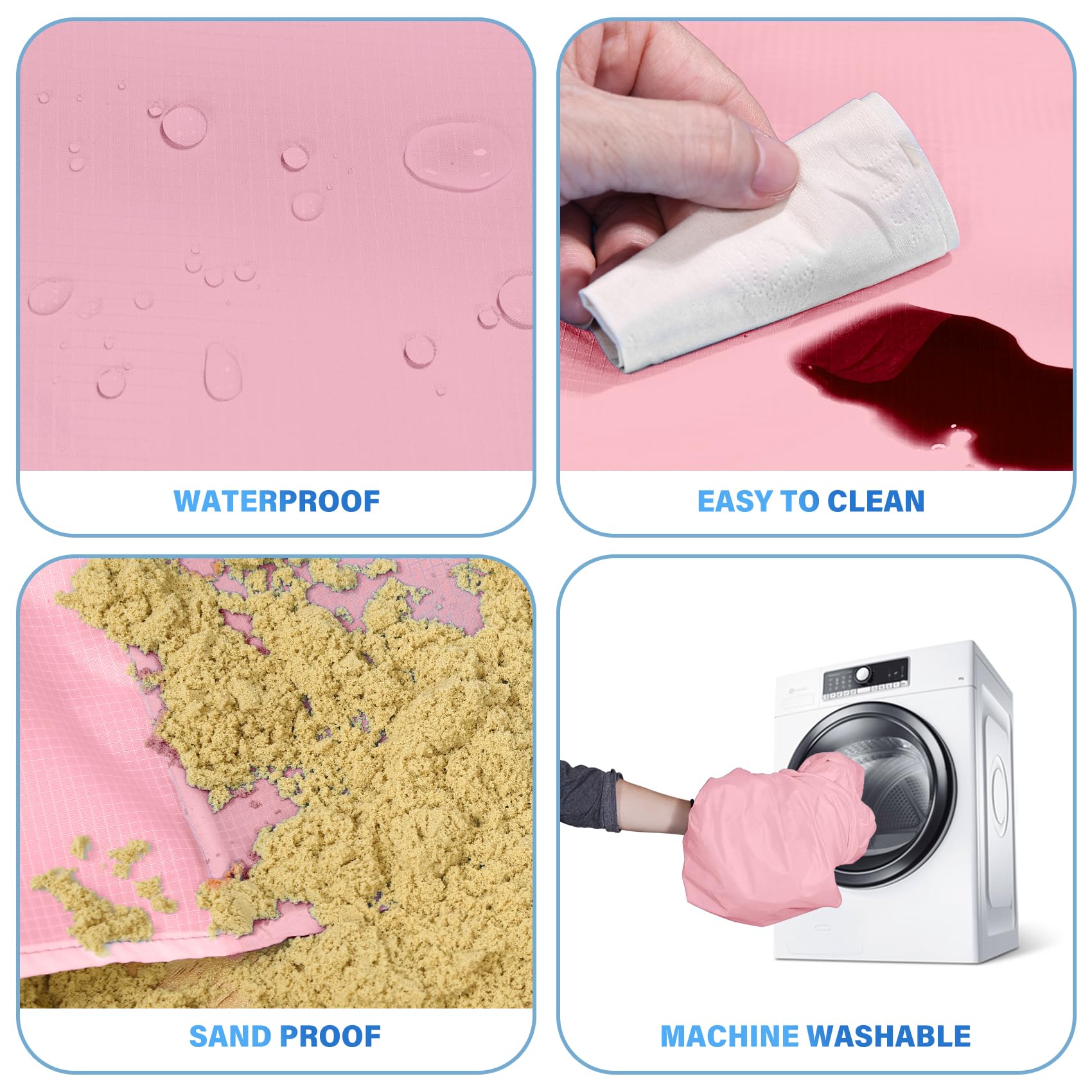 • 🏕️Beach Blanket Oversized:Good wear resistance,Dry-Quick,Can also be used as a rain shed,sunshade,tent,toddler crawl,Emergency mat,Feel comfortable lying down,Won't irritate your skin,Better professional fabric sewing.