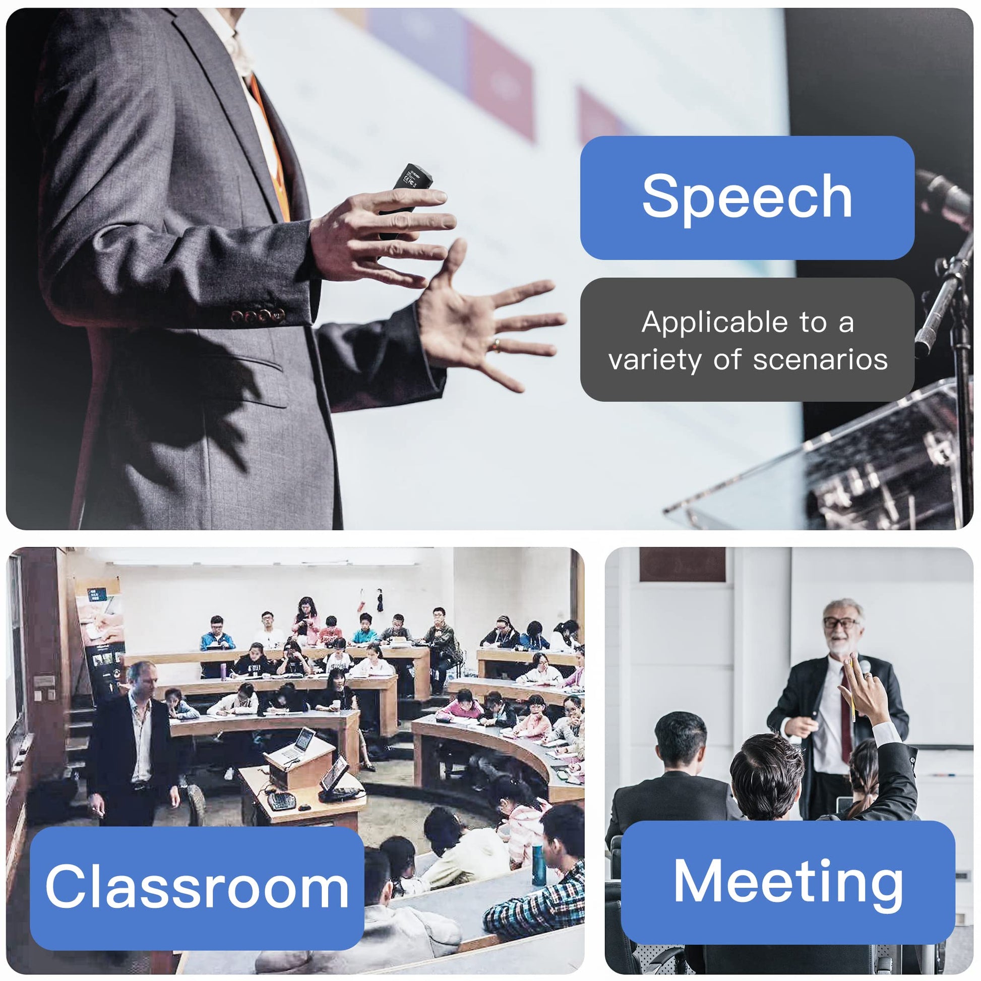• Wireless range of up to 100 feet (30 meters); You can enjoy the freedom to move around the room and mingle with your audience for greater impact. A reception-level indicator ensures you don't wander too far.