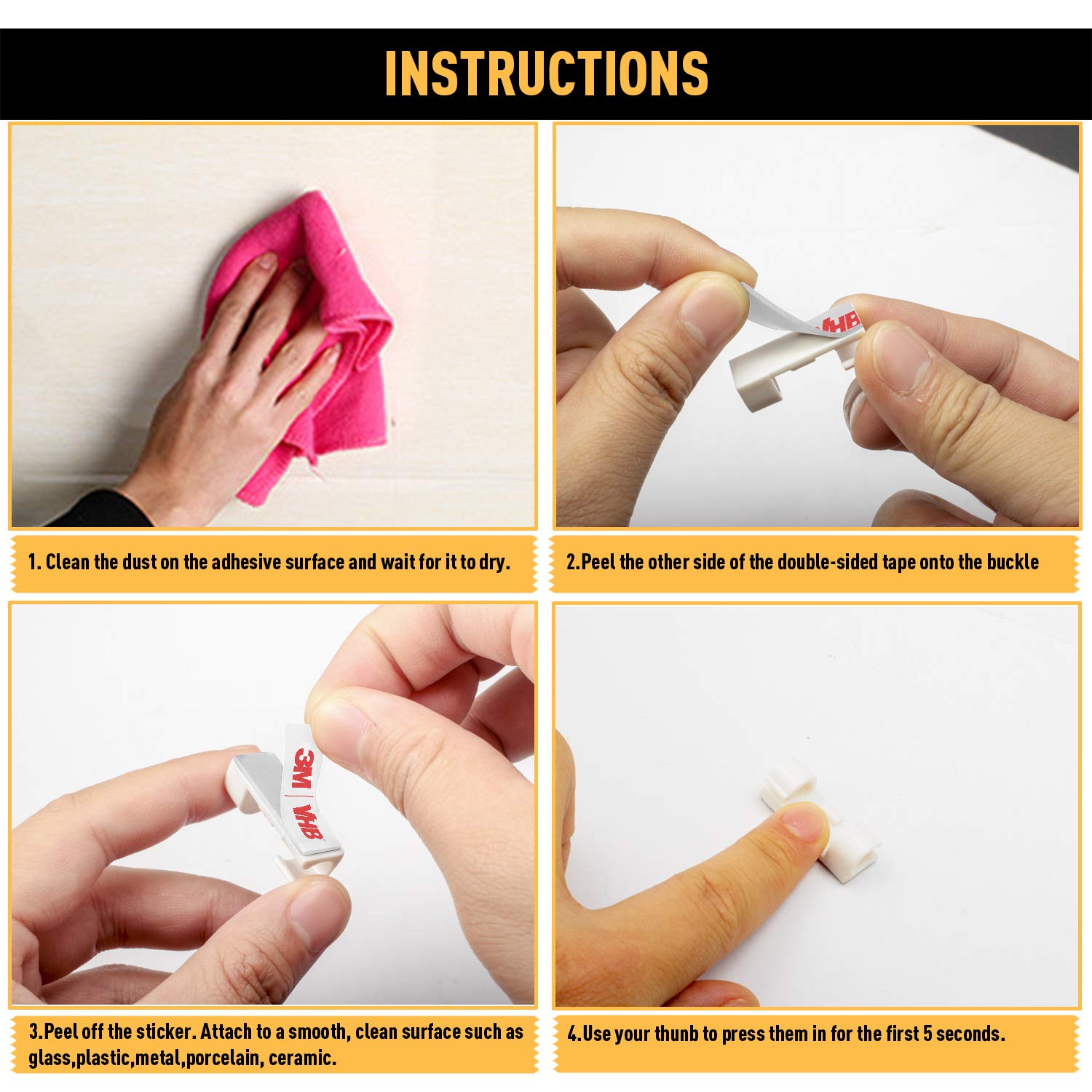 • 【Multi-purpose cables clips】Widely used in home, office and car. Special for power cords, charging cables, CAT-6 cables, USB cords, network cables, laptop power cable..etc.