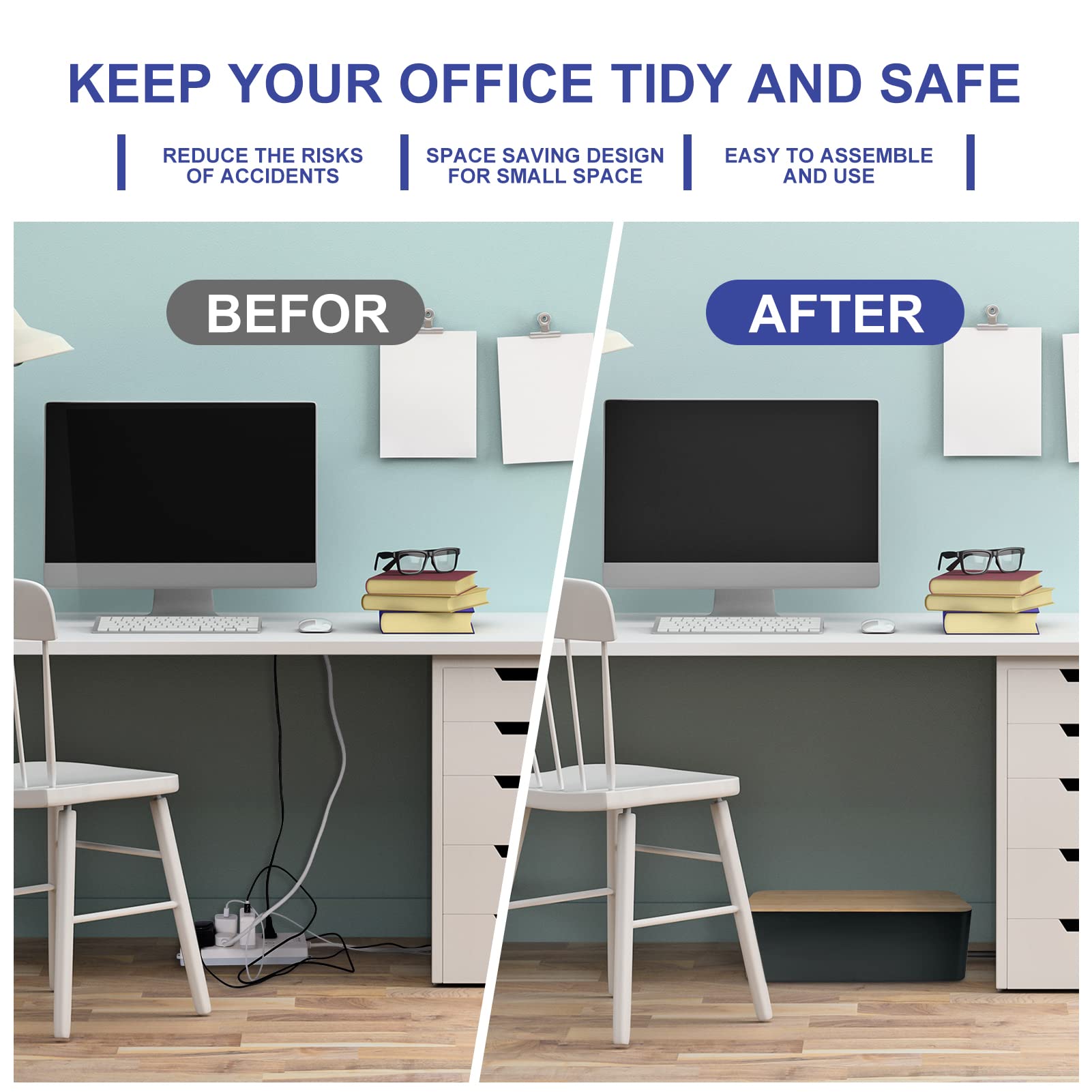 • [SMART CABLE MANAGEMENT SOLUTION] Everyone has an area or two of their home or office where the dreaded ‘Cord Octopus’ lives, under the computer desk, behind the TV stand, or around the gaming console. This cable organizer box helps hide away power strips, USB cables, surge protectors, TV, for home or office use