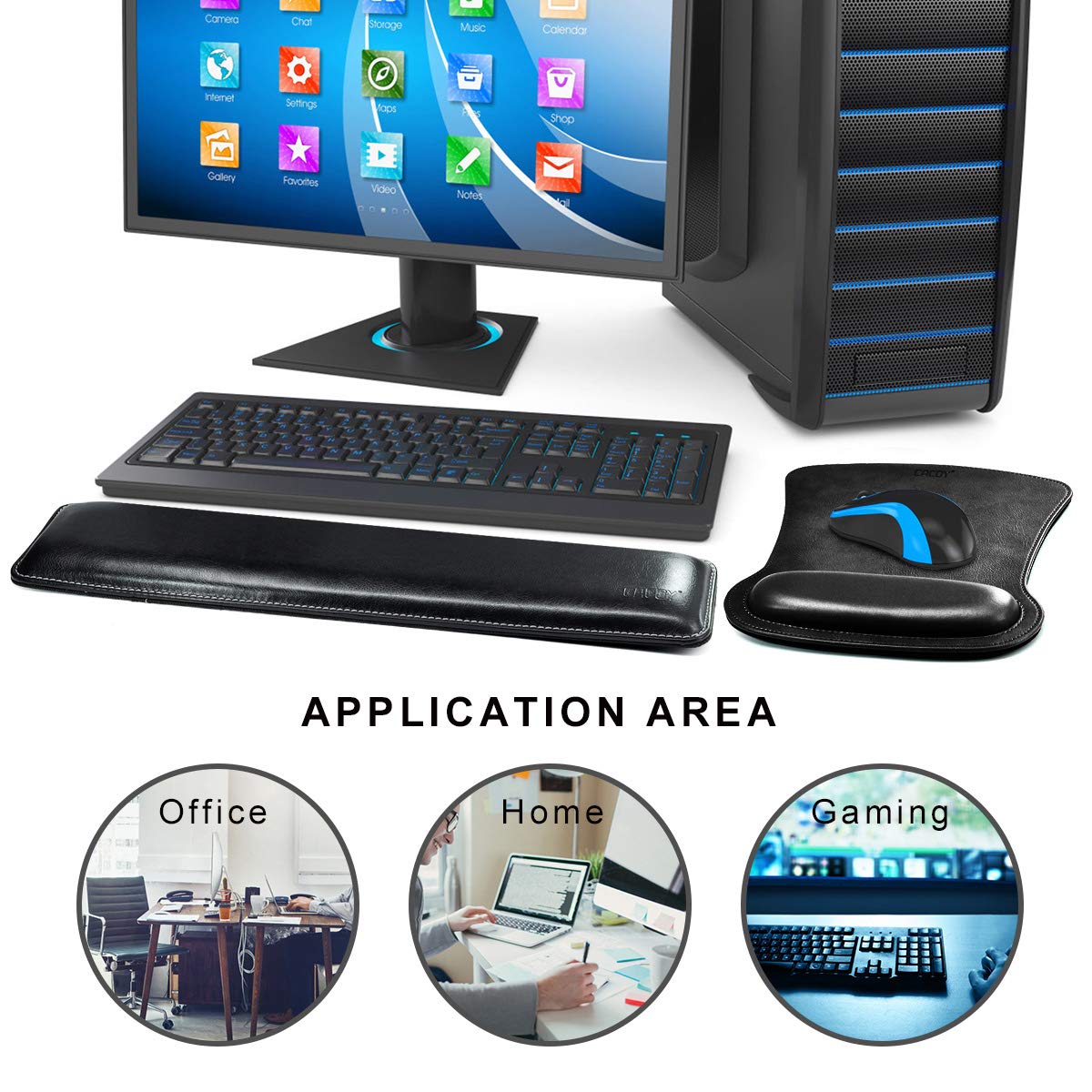 Cacoy Ergonomic PU Leather Keyboard Wrist Rest and Mouse Pad Wrist Support Set Memory Form-Filled and Non-Slip Base Easy-Typing and Pain Relief Wrist Rest for Office Computer Laptop (Black)