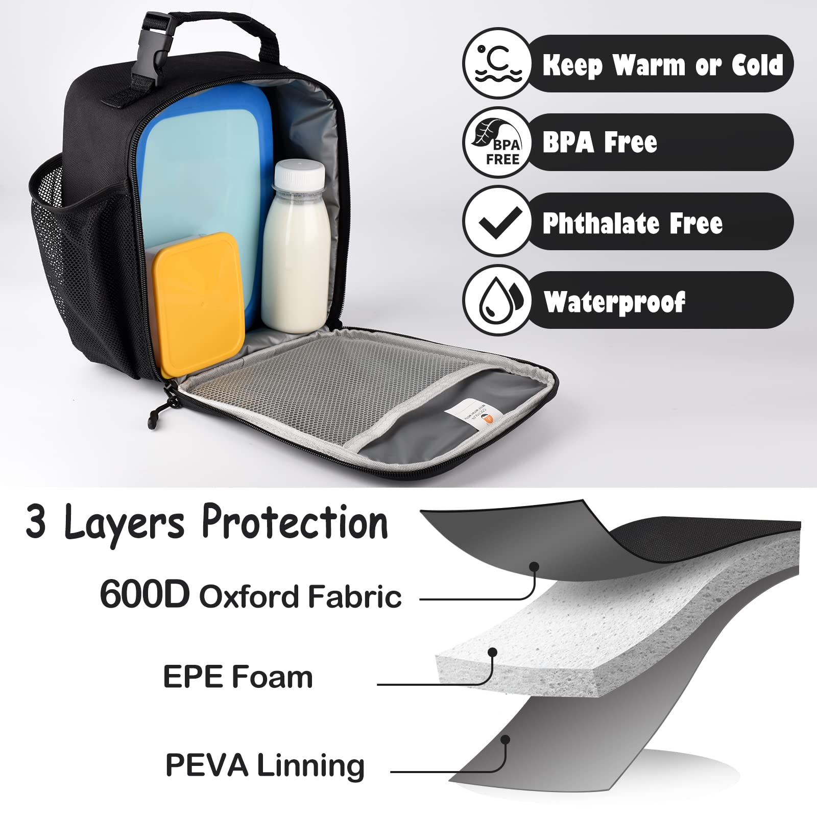 • Insulation & Waterproof & Easily Clean - This lunch bag kids is made of insulated material to keep food cold/warm for hours, get fresh food with right temperature. It is made of rip resistant 600D oxford fabric,PEVA linning and the ultra-thick EPE