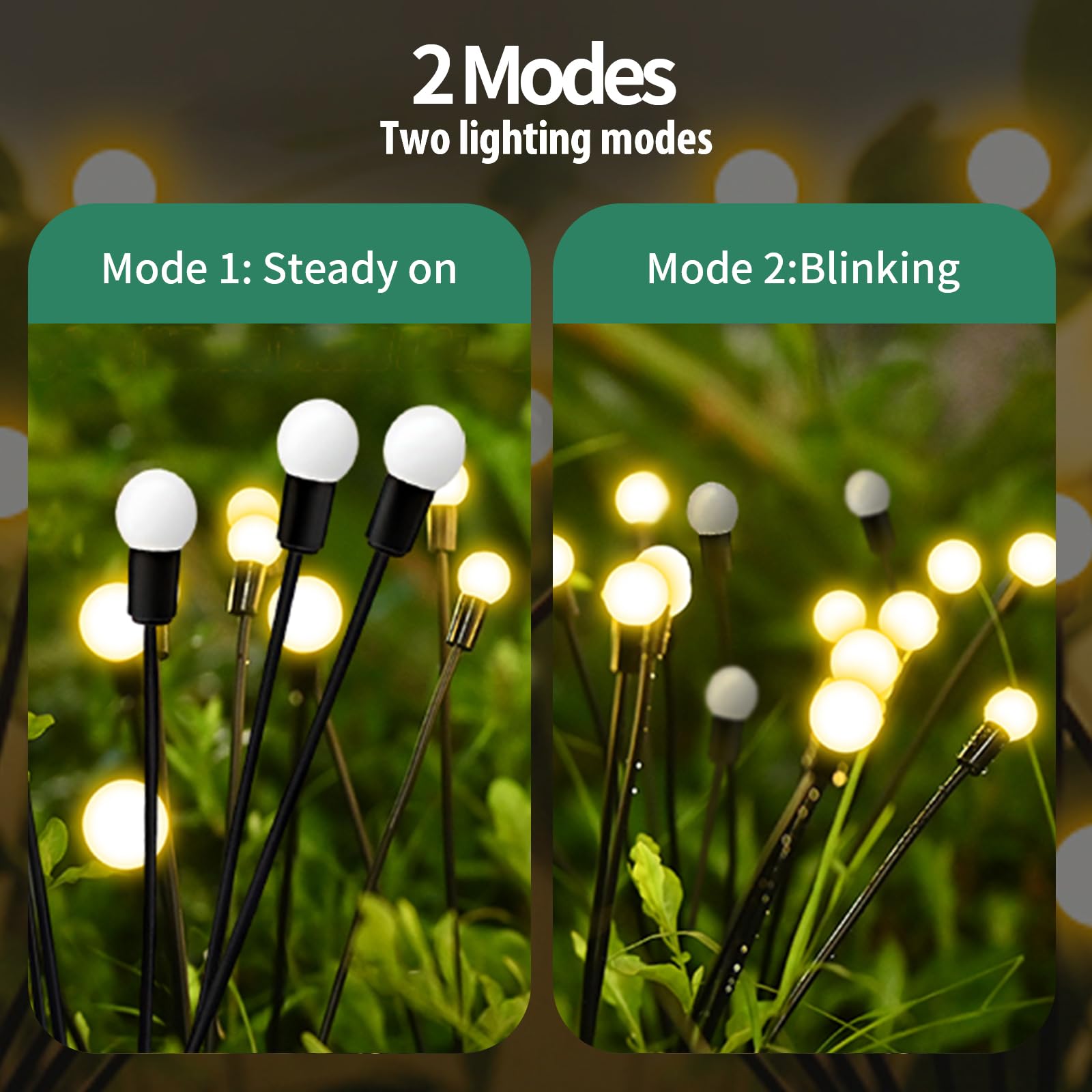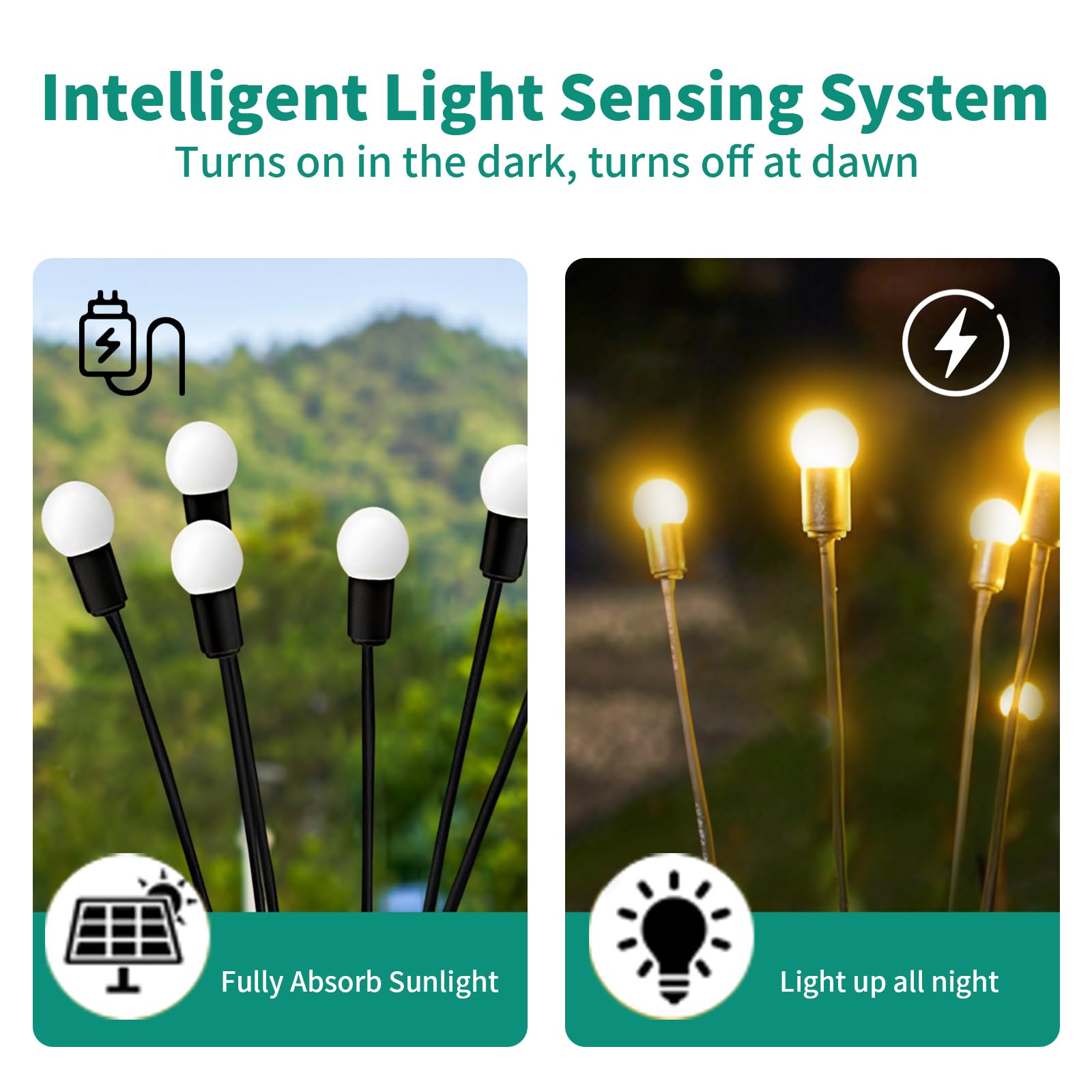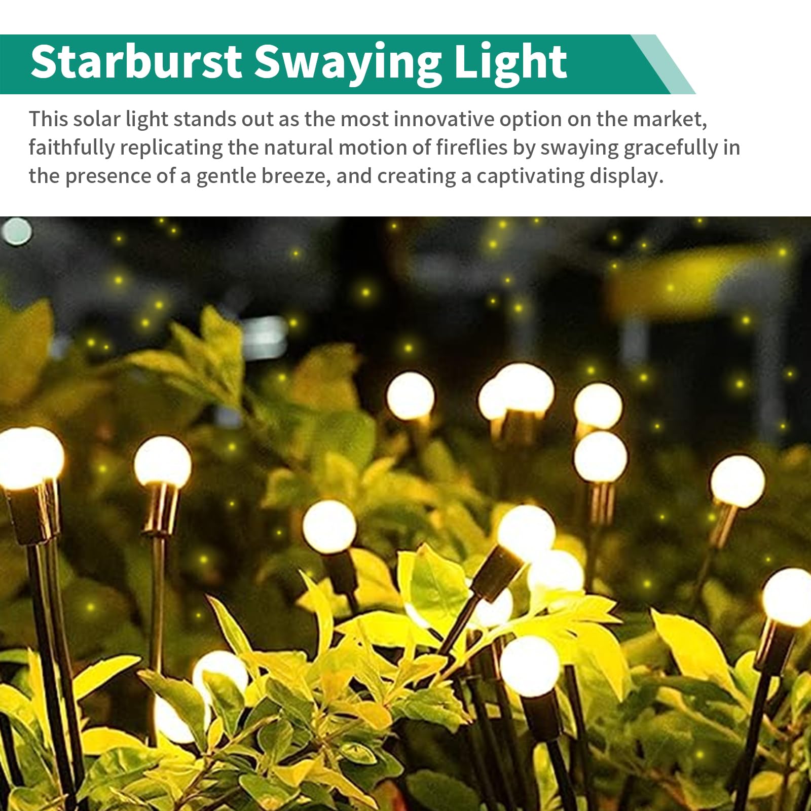 • PACKAGE INCLUDE: 8 Pack of Solar Garden Lights featuring 64 bright LEDs per light. Enjoy a captivating glow in your yard with dynamic swaying design that enhances your outdoor decor experience.