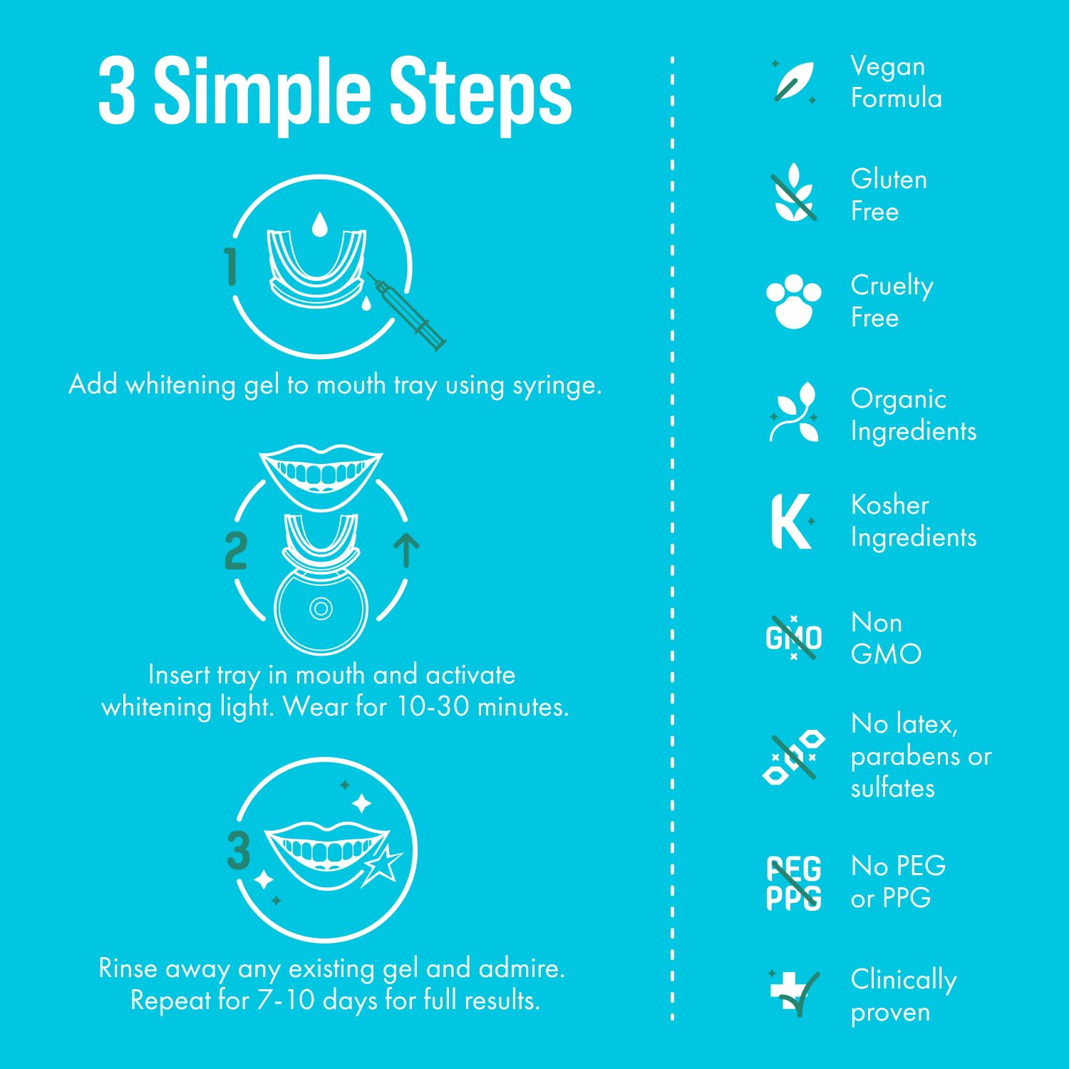 • Clean and Safe: The teeth whitening kit is vegan, free from sulfates, parabens, GMOs, and gluten, ensuring your whitening experience is clean, safe, and cruelty-free