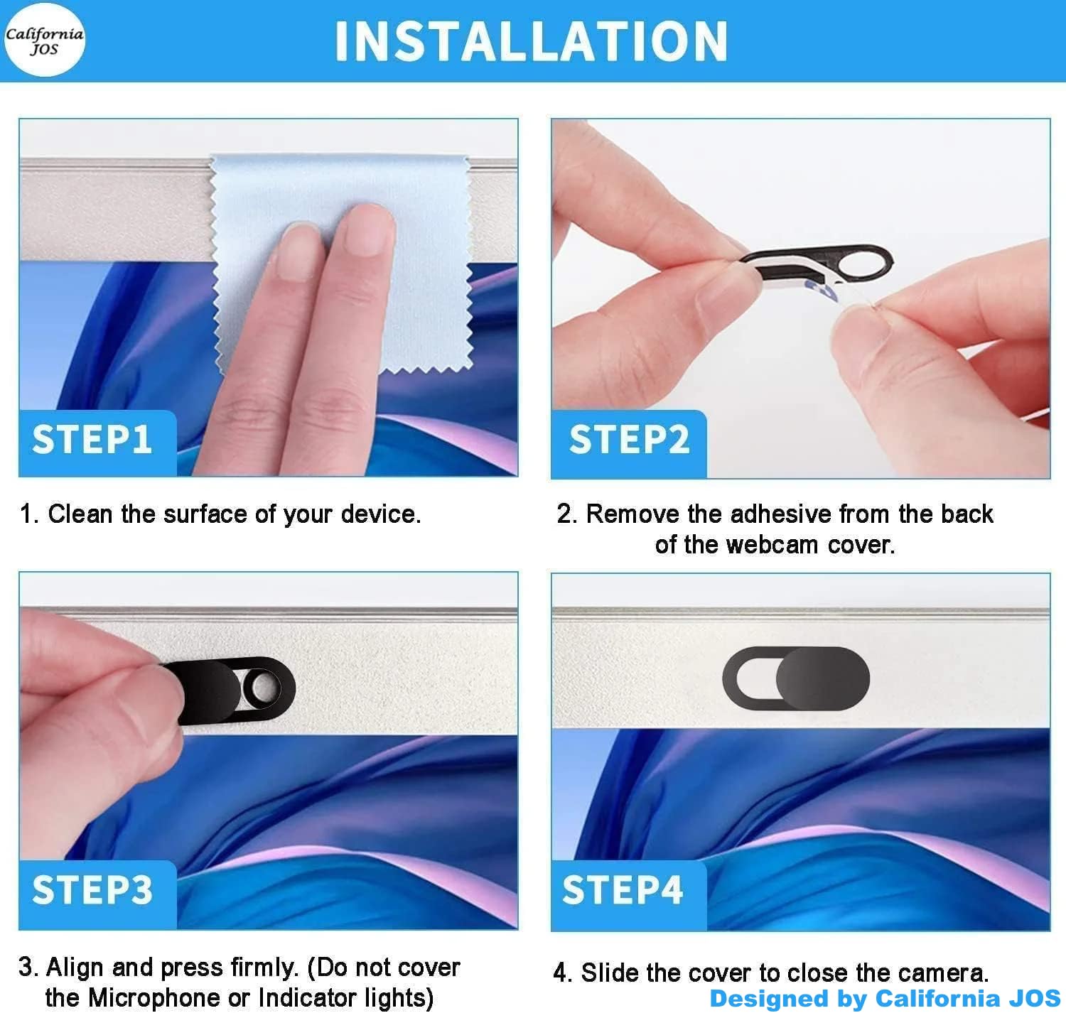 • ✅Why California JOS webcam cover? Safeguard your privacy by covering your webcam with our reliable webcam cover when not in use. Don't let anyone secretly watch you. Stay safe &Stay protected!