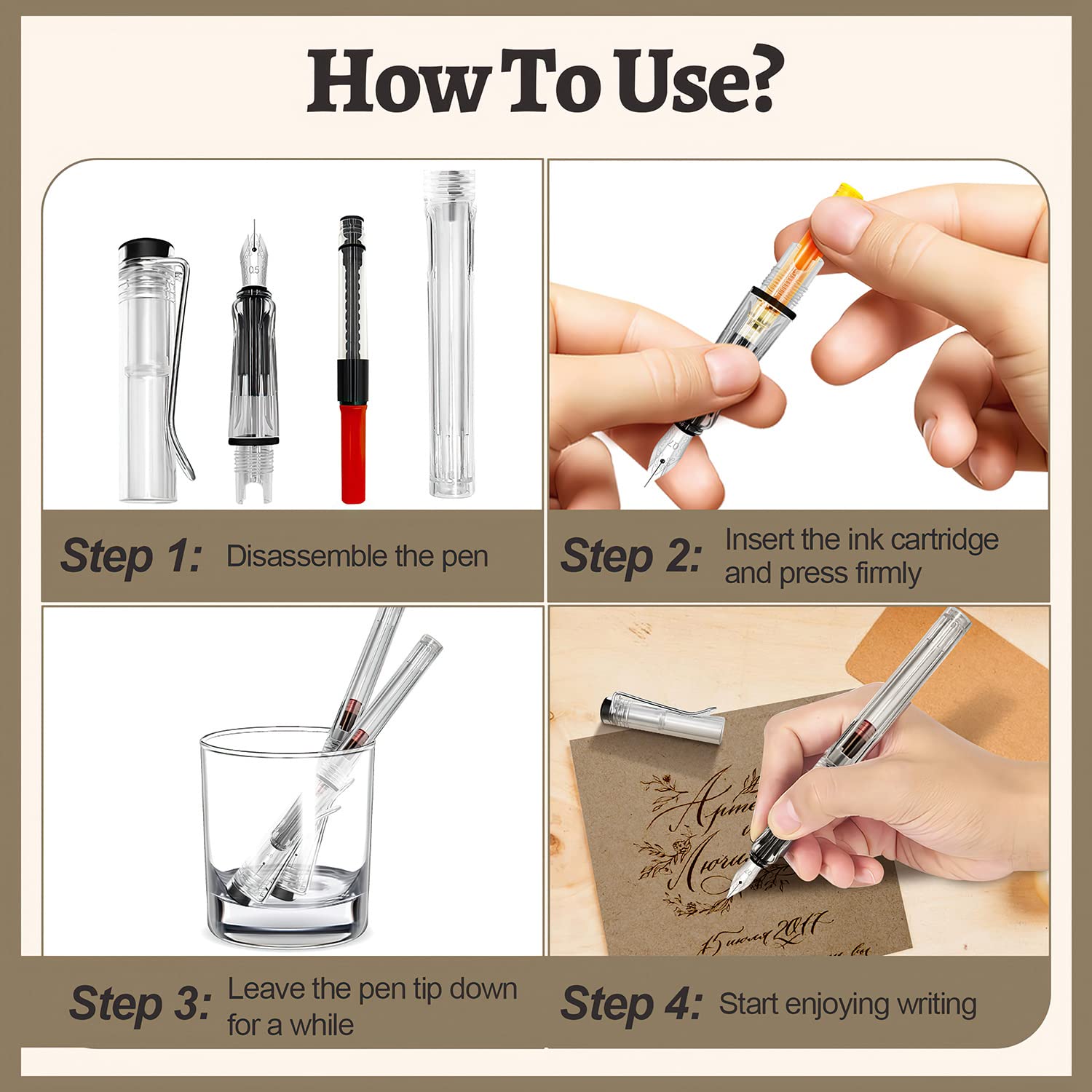 • Two Ways To Refill Ink: Equipped with 6 ink converters, rotate the pen's plunger converter to extract your preferred ink. The portable ink cartridges can be used on the go to have an instant ink supply