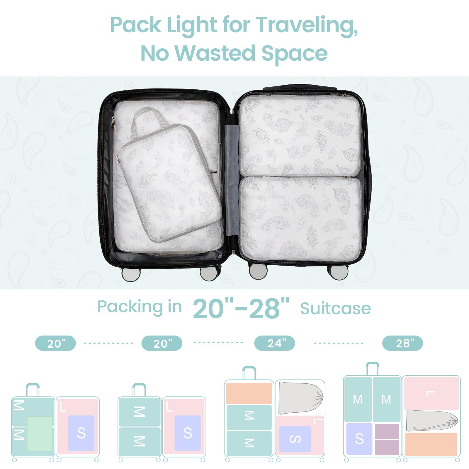 Pack More in Less Space: Maximize your luggage space with our space saving packing cubes for travel! The compression zipper design helps save up to 50% storage space, allowing you to fit up to 50% more in the suitcase; it can also compress clothing securely to prevent shifting and wrinkles. Perfect for travelers who want to pack efficiently