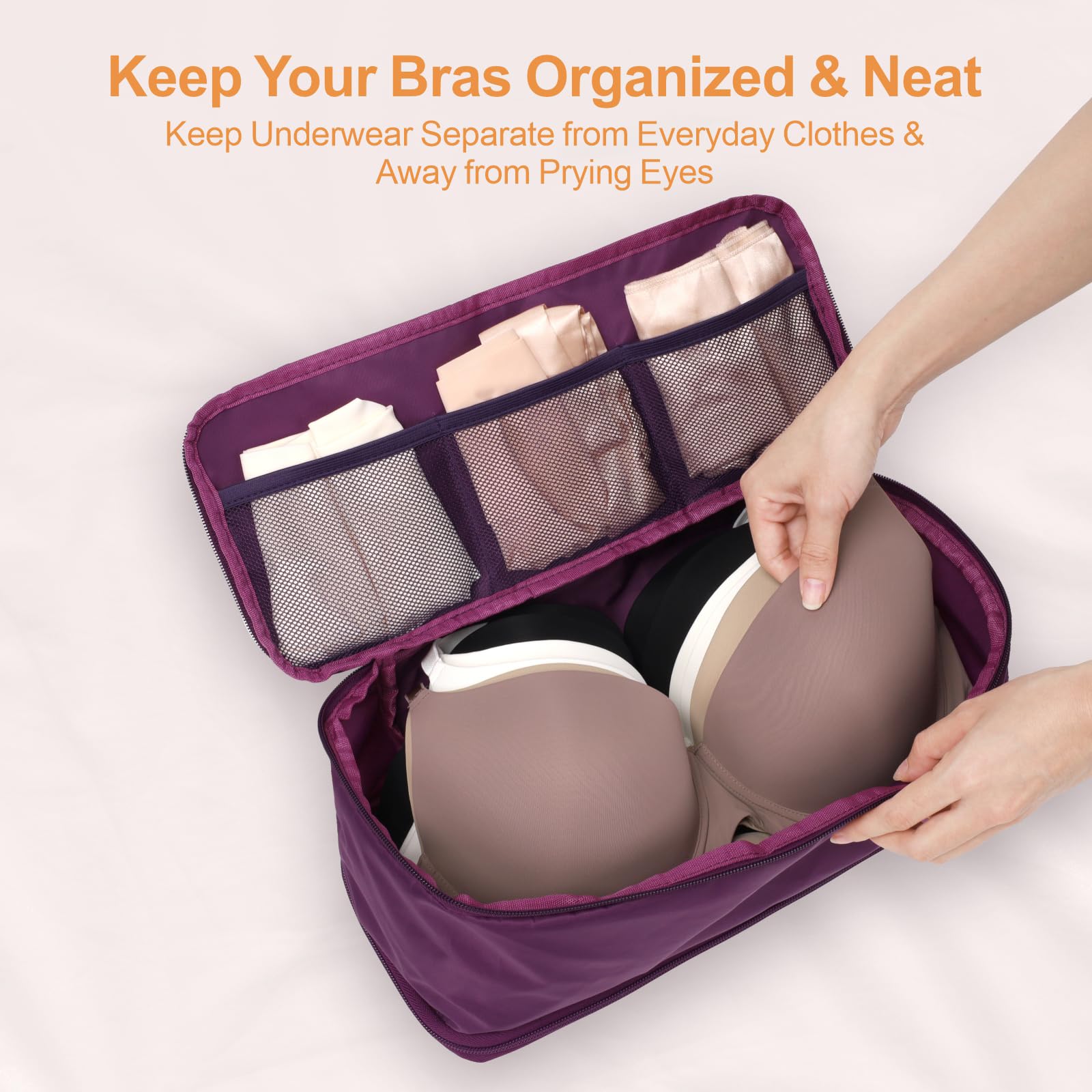 • Special Design for Underwear: Separate underwear from everyday clothes to keep them clean and away from prying eyes! More organized and hygienic! Easily flat storage of bras from A to 36D cups without folding. Measuring 15x5.9x10.2 inches, it's ideal for 1-week travel. The bra bag for traveling can hold 5 sets of bras and panties, 5 pairs of socks, 1 swimsuit and lightweight pajamas