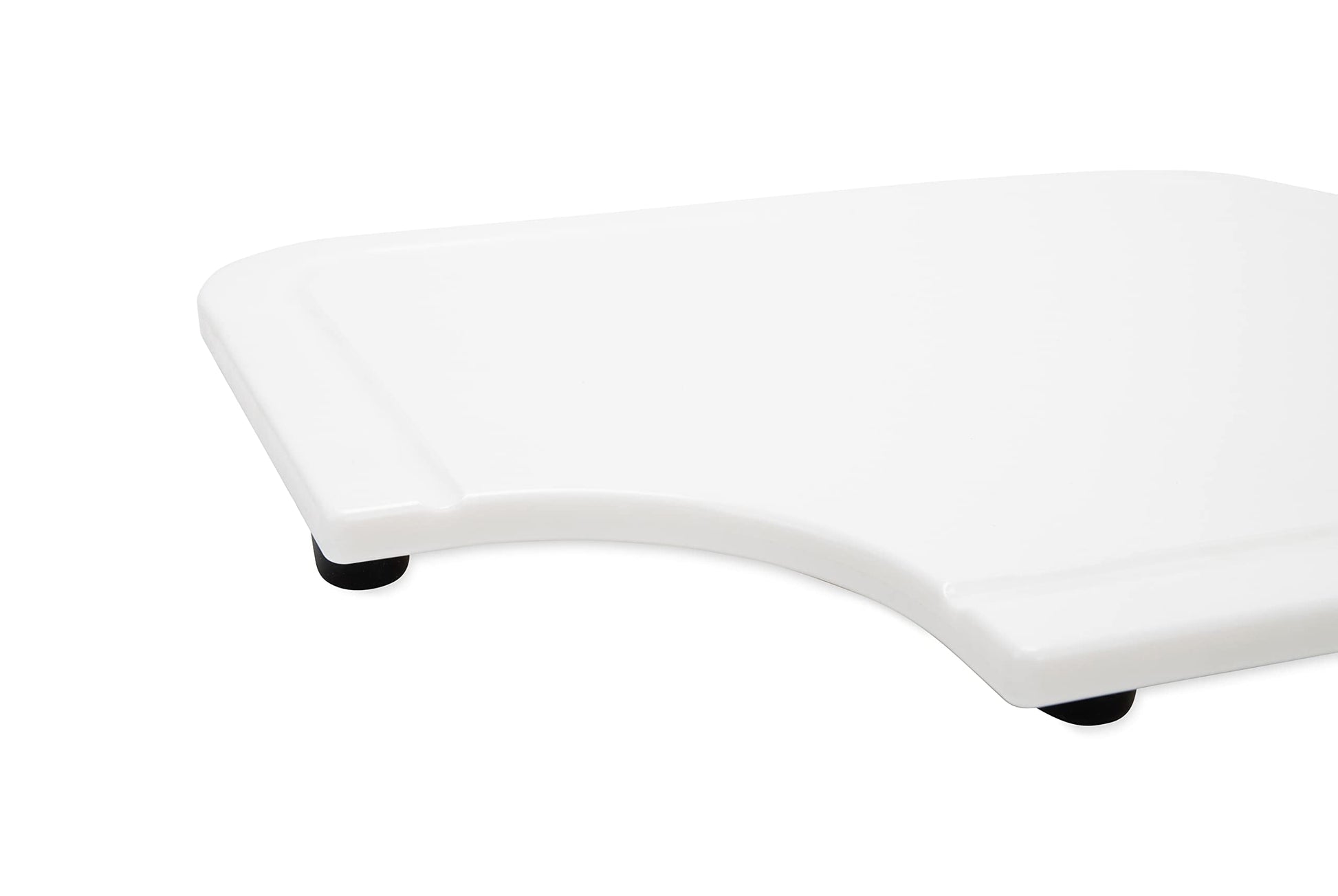Details: Upgrade your boat or RV kitchen with Camco's White RV/Marine Sink Mate Cutting Board. This versatile addition provides extra workspace directly on top of your camper sink or counter, making it perfect for all your cleaning, carving, and chopping needs. Made from durable polymer, this sink cover cutting board protects your knives from damage & offers a built-in juice groove and a convenient cut corner for easy scrap disposal. Measuring 12 1/2″ x 14 1/2″ x 1/2″, it's designed to fit various sink sizes (10″ x 14″, 11″ x 13 1/4″, and 12″ x 14″). Simply place it on your RV or boat sink and adapt the adjustable rubber feet for a secure fit. Maximize your counter space with this must-have over the sink cutting board by Camco!