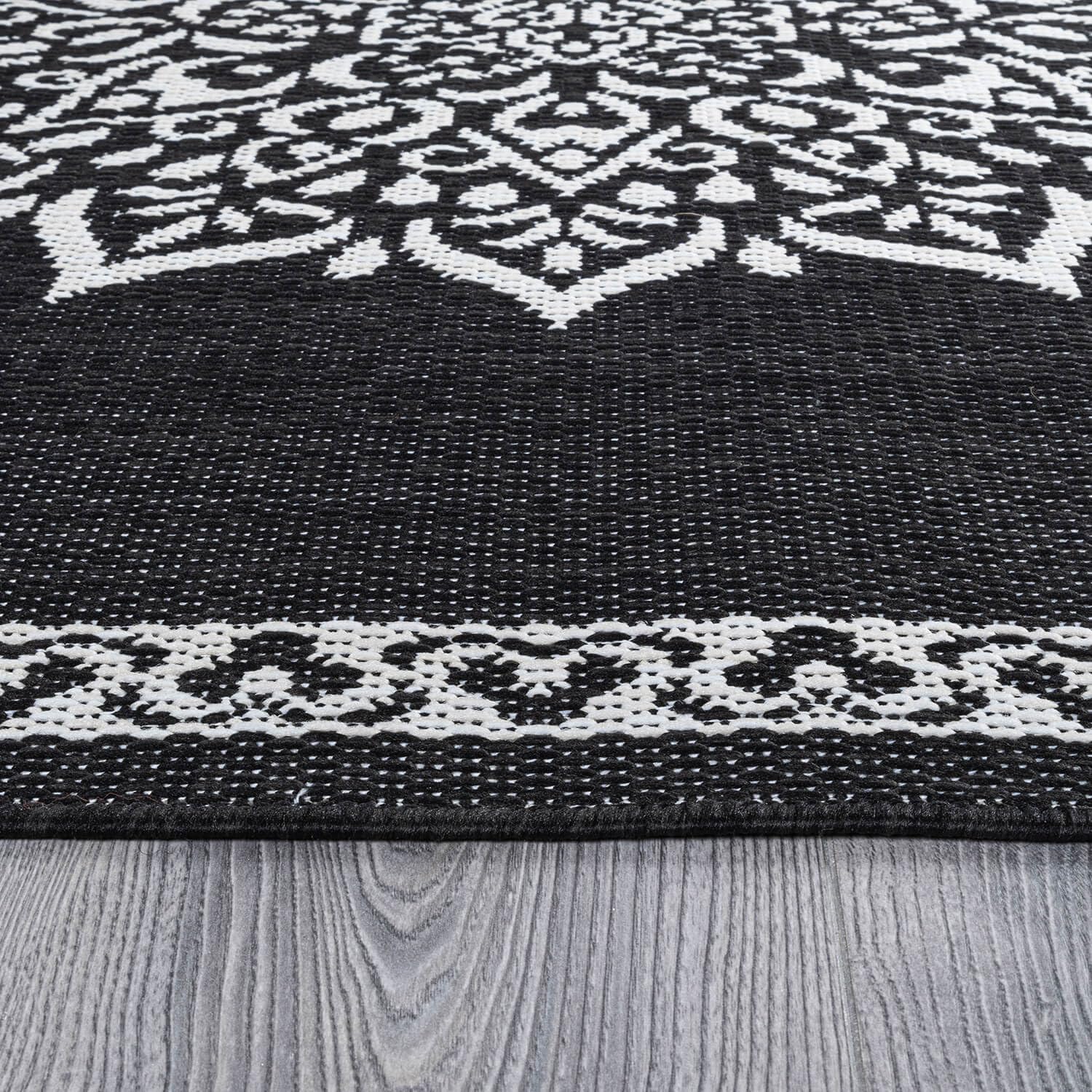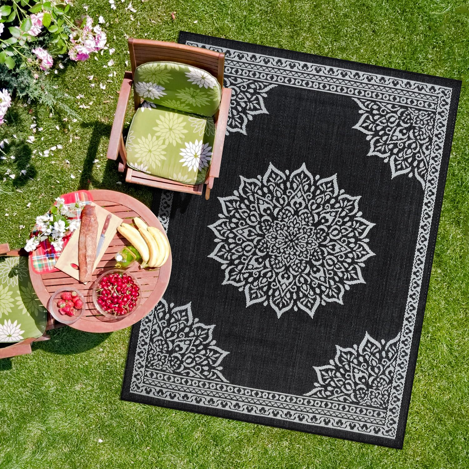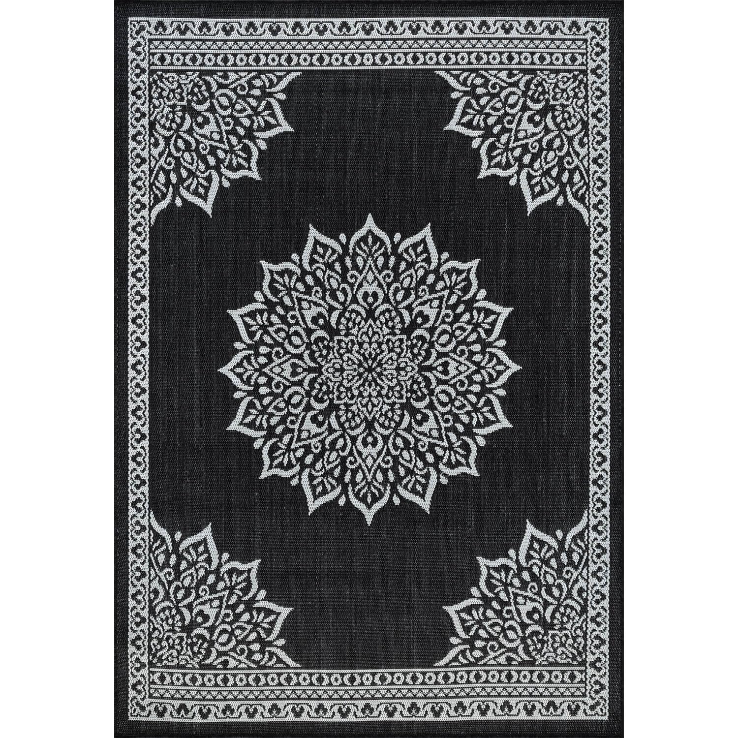 CAMILSON Outdoor Rug, 5x7 Medallion Black White Modern Area Rugs for Indoor and Outdoor Patios, Kitchen and Hallway Mats, Washable Porch Deck Outside Carpet (Medallion Black, 5 x 7)