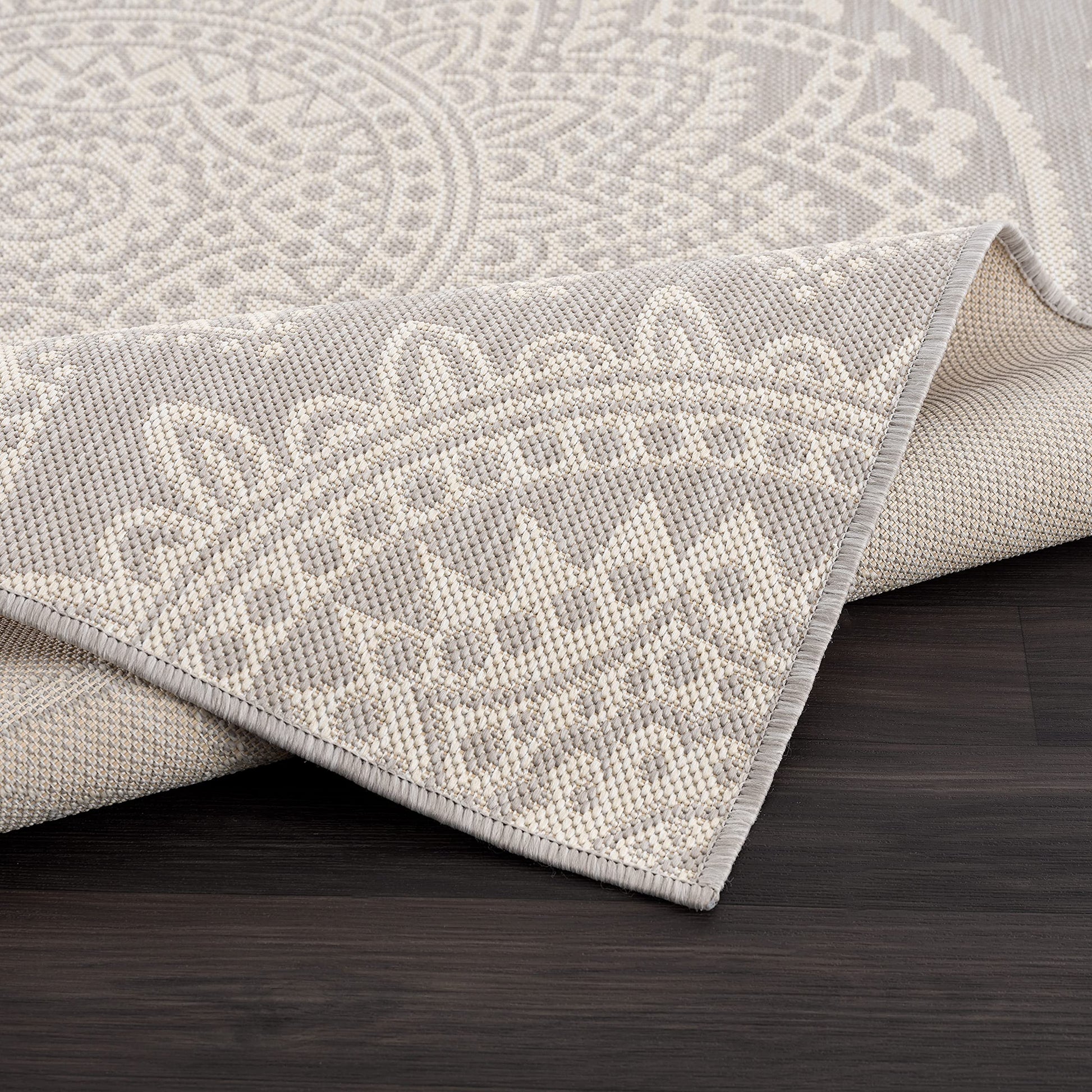 CAMILSON Outdoor Rug 5x7 Modern Area Rugs for Indoor and Outdoor Patios and Porches - Waterproof, Washable, Non-Shedding, Easy-to-Clean Outside Carpet (5 x 7, Medallion - Grey/White)