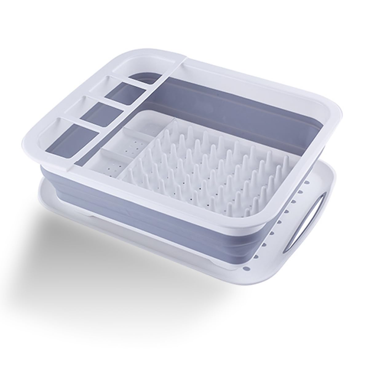 • Portable Dish Drainer Silverware Organizer: Separate utensil area keeps smaller items upright for faster drying and large capacity storage. The tray of our folding dish rack for water drops and can be used a serving tray