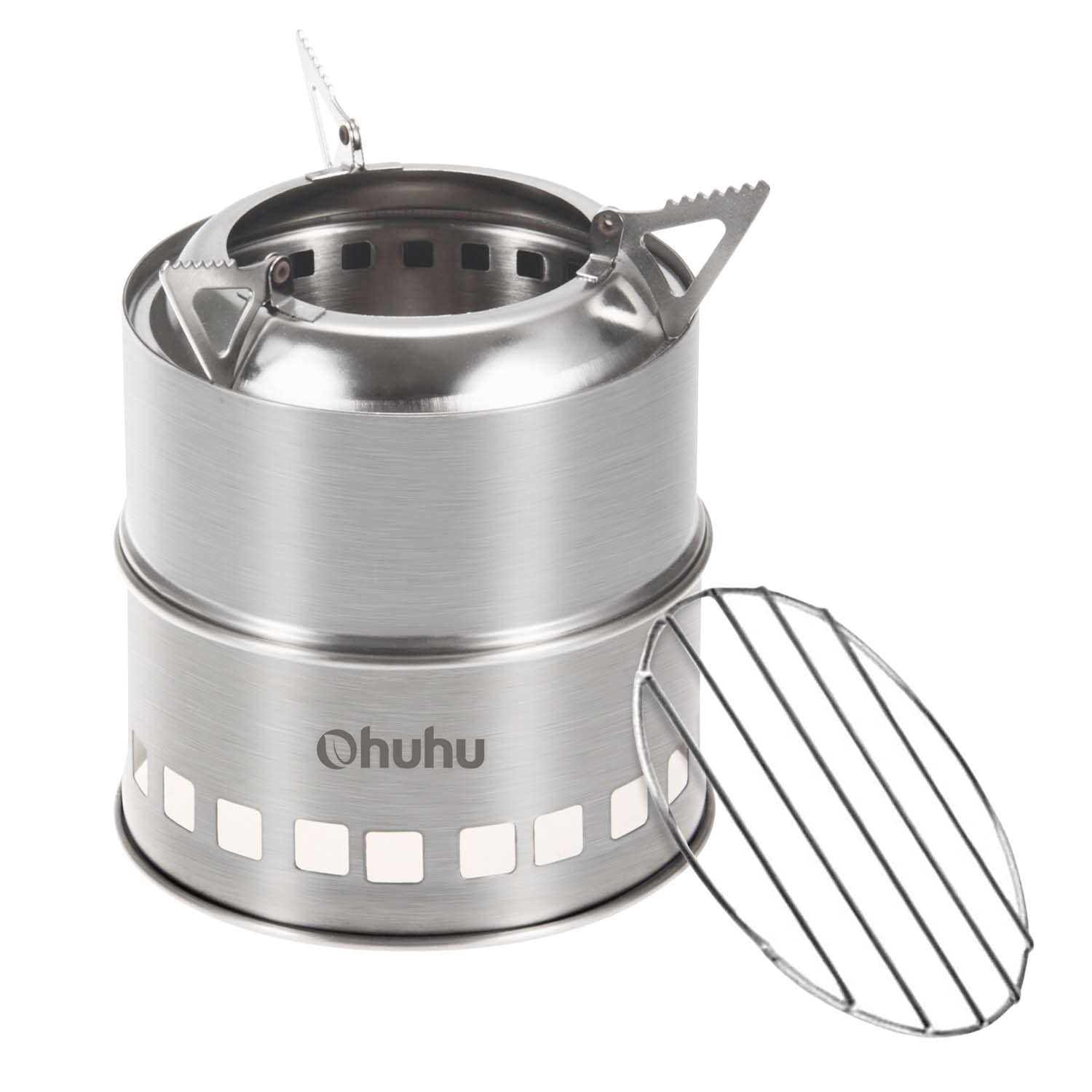 Camping Stove, Ohuhu Camp Stove Wood Burning Stove Stainless Steel Stoves Mini Portable Stove for Camping Picnic BBQ Backpacking Hiking Survival Emergency Cooking Outdoor with Grill Grid Carry Bag