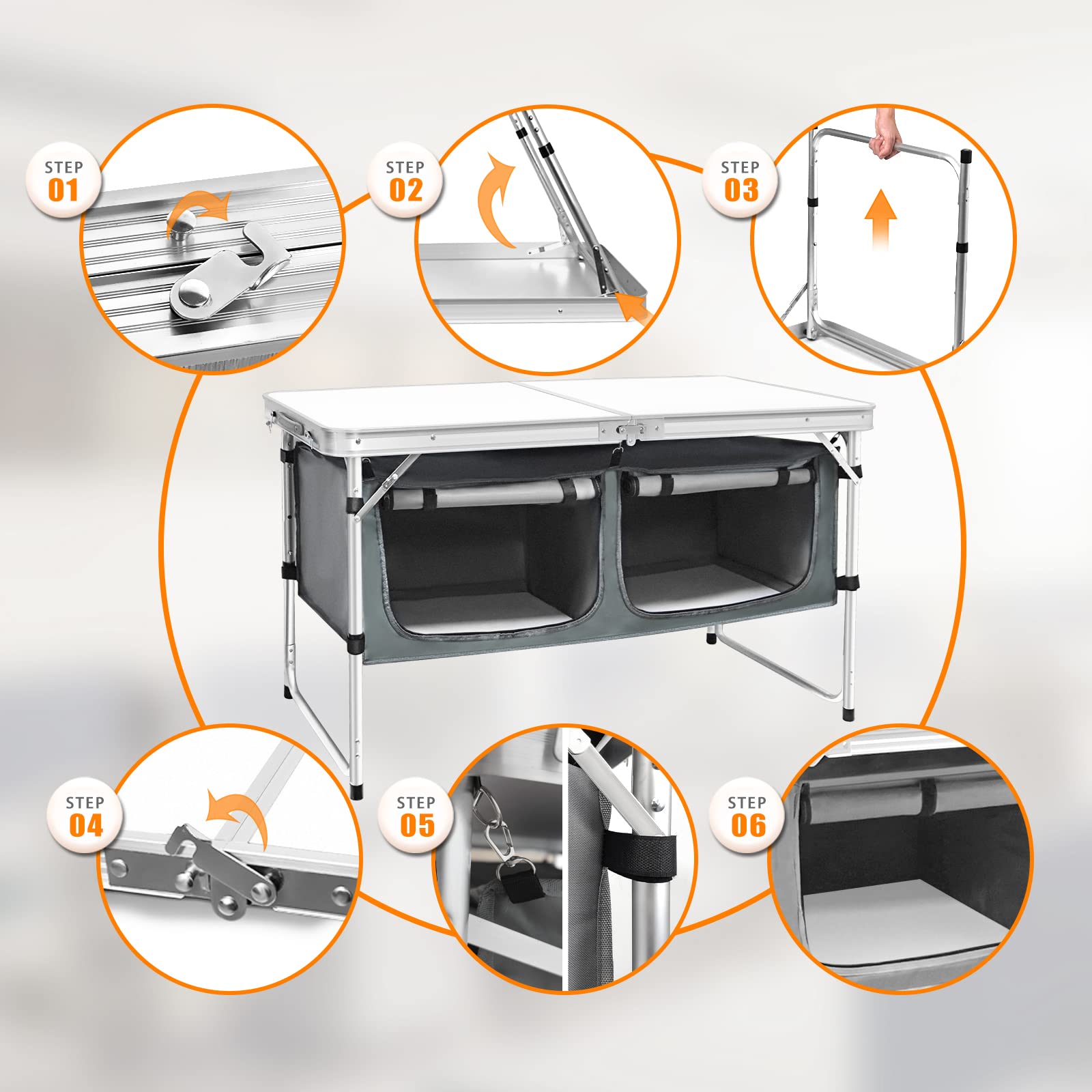 CampLand Outdoor Folding CampingTable with Aluminum Lightweight Height Adjustable with Storage Organizer Picnic Table for BBQ, Party, Camping (WhiteBig)