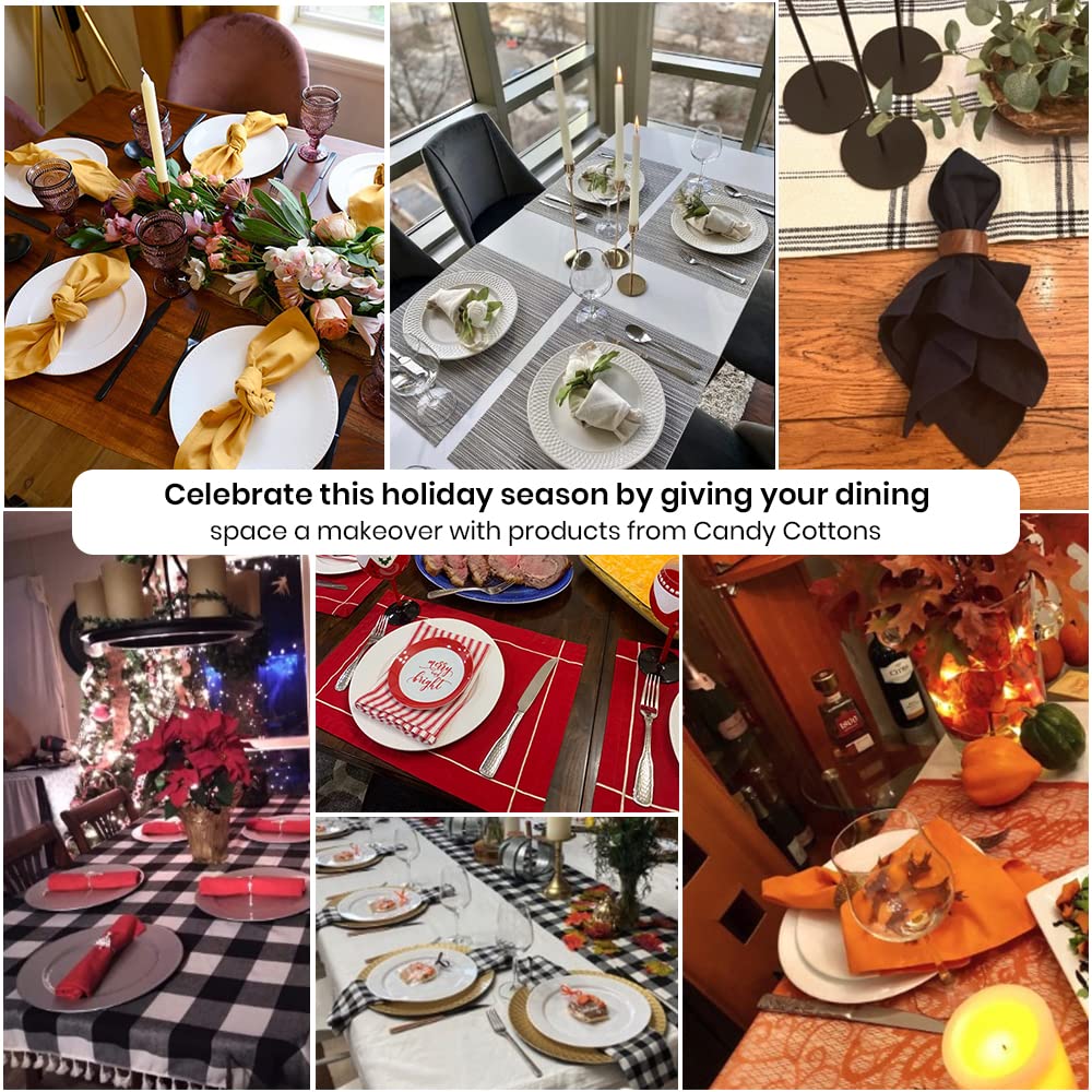 • GREAT USABILITY : Whether it's an Event or just a Dinner at home,Cloth Napkins Creates an elegant rich look for any Dinner Table.These are great for Hotels, Restaurants, Cafes,Banquet Dinner and Wedding events as they complement Decoration around.Candy cottons napkins offer the opportunity to fold them elegantly and adorn your dinner table, enhancing the ambiance for a cozy dining experience. Their flexibility in folding allows you to creatively decorate your dining table setting with ease.