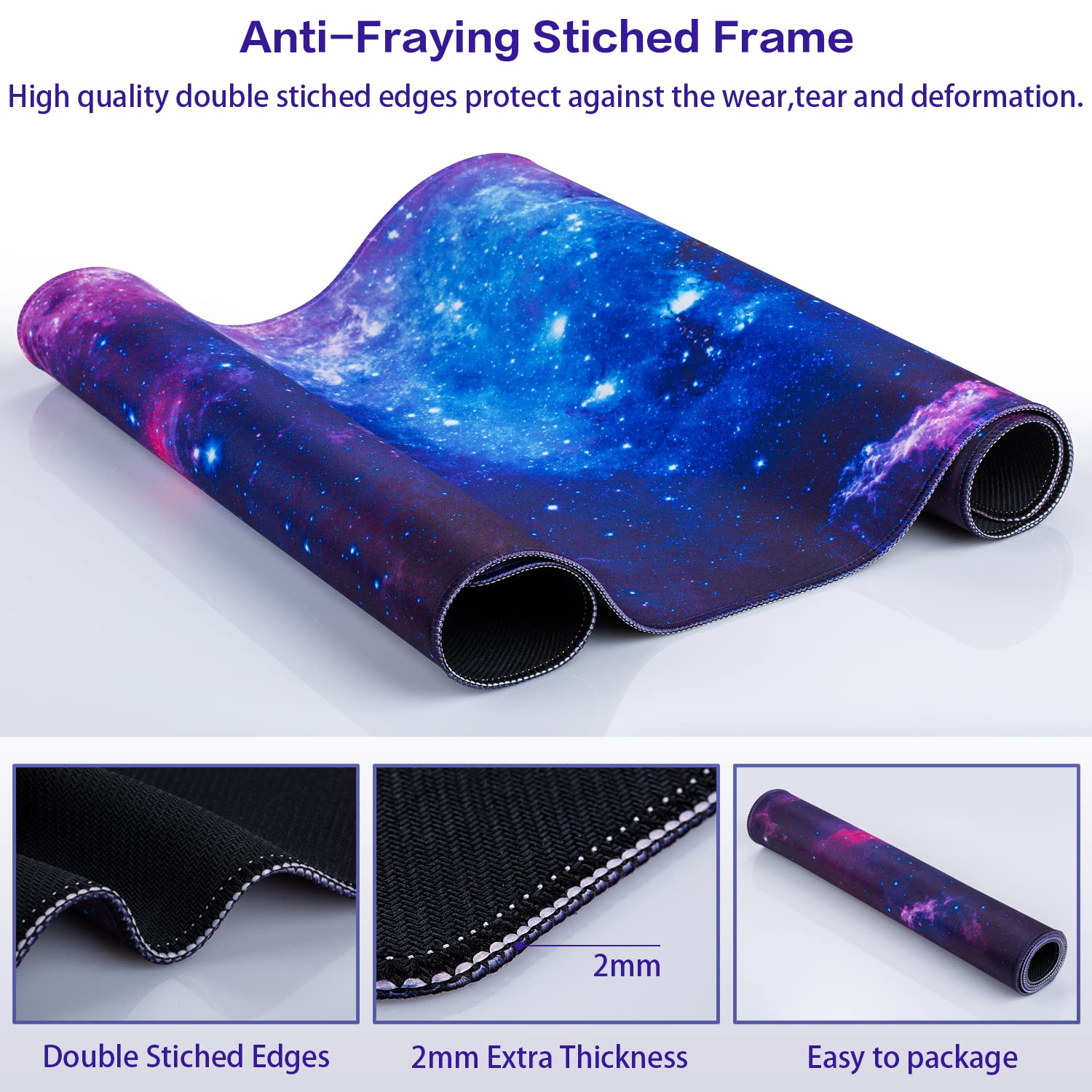 • Ultra Smooth Surface】This extended mouse pad is easy to be cleaned by wet rag or washed,no deformation and much durable than other ones. Covered by the superfine fabric, the mouse pad has a soft and smooth surface, helps you track the mouse fast and accurately, maximally enhances your gaming/working experience.