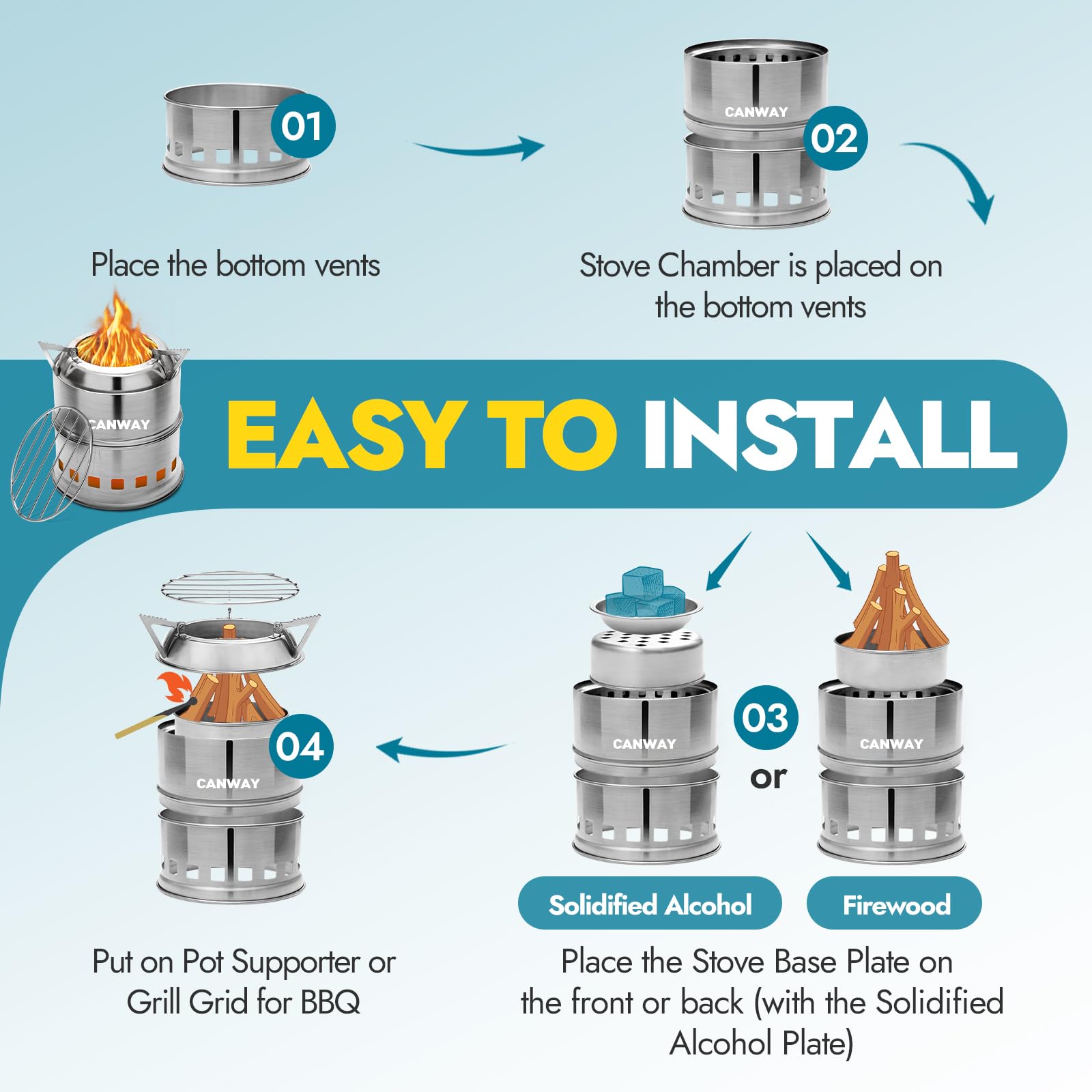 • What You Get: 1 x wood burning stove, 1 x storage bag, 1 x user manual. Perfect for hiking, camping, backpacking, BBQ, picnic etc