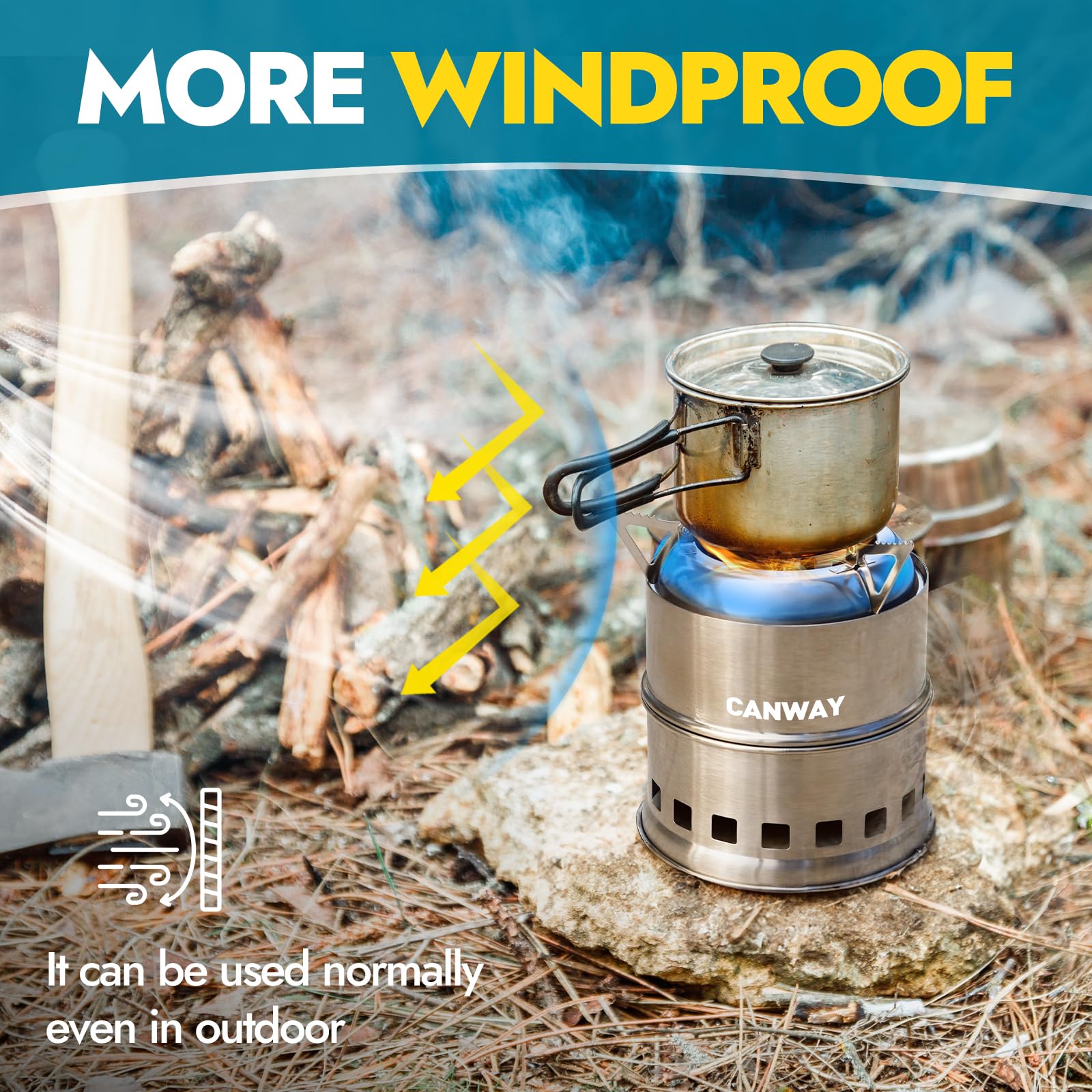 CANWAY Portable Camping Stove Mini Wood Burning Camp Stove for Backpacking Hiking Traveling Survival Cooking Stove Stainless Steel Emergency Folding Camping Stove with Carry Bag