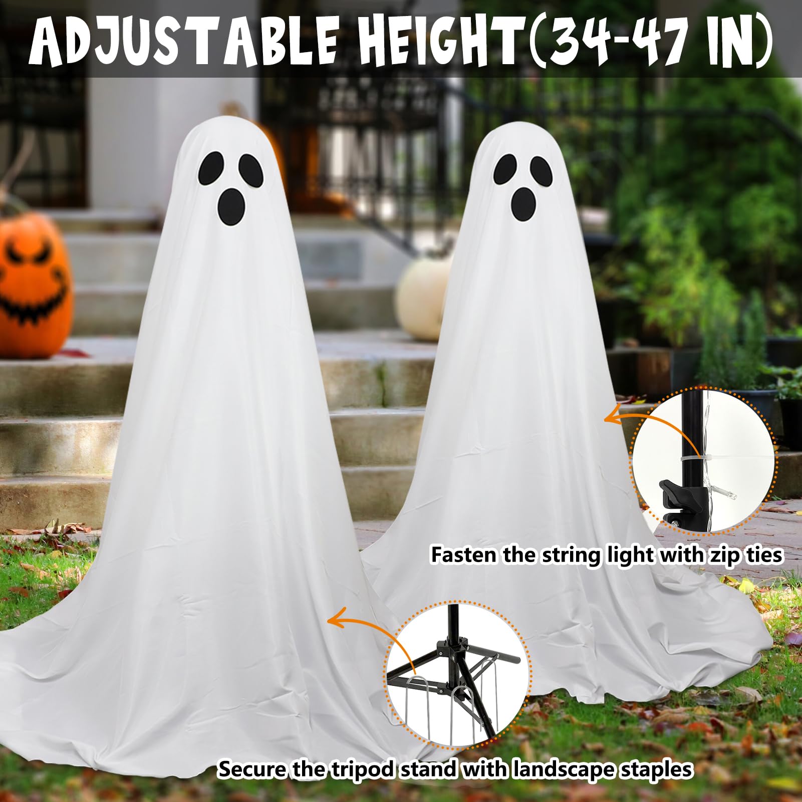 • 👻Quick-Setup Halloween Ghost Décor: These cute ghosts feature adjustable height from 34' to 47' and are super easy to assemble. For outdoor use, easily secure them with included landscape stakes!