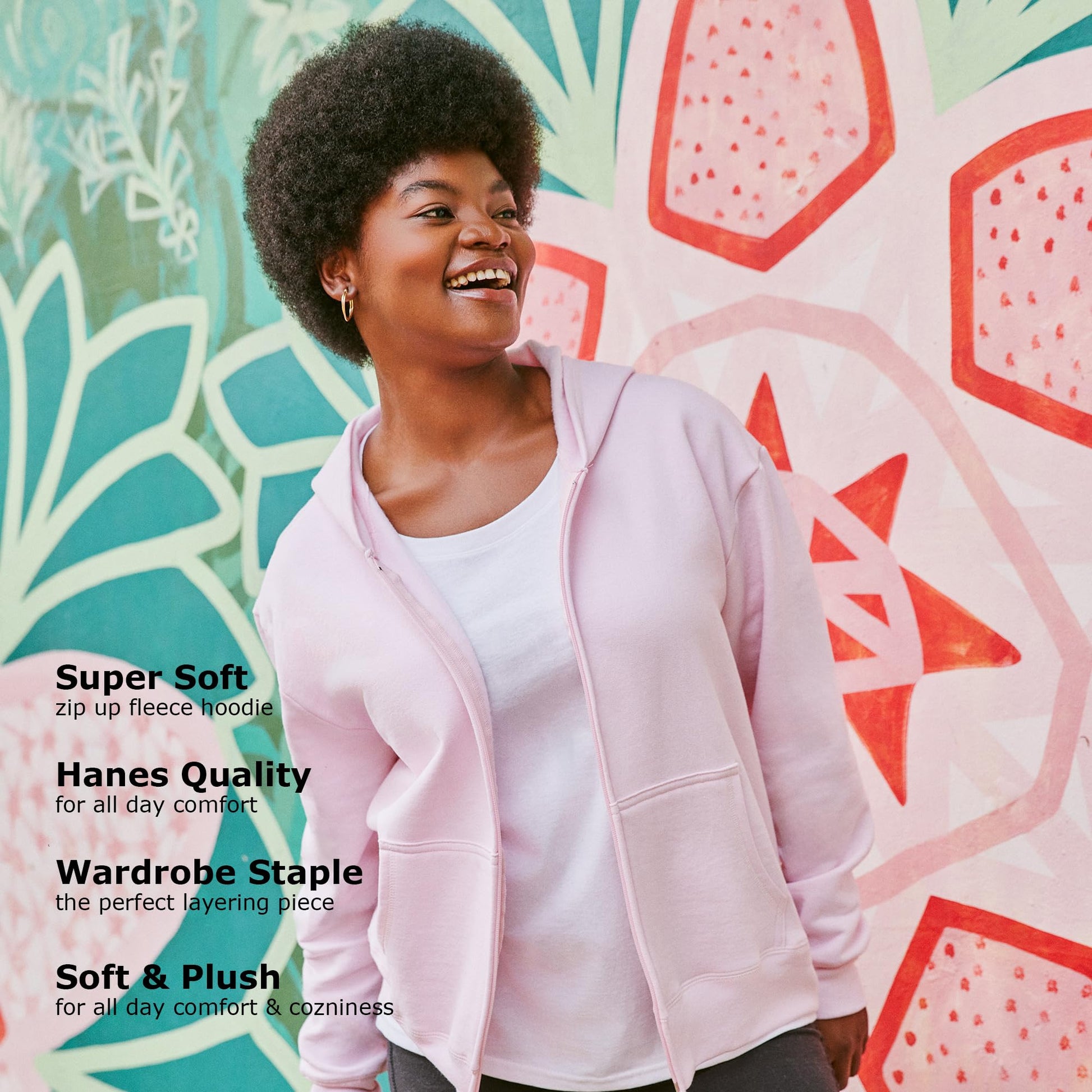 Hanes Women's EcoSmart Full-Zip Hoodie Sweatshirt, Ebony, Medium