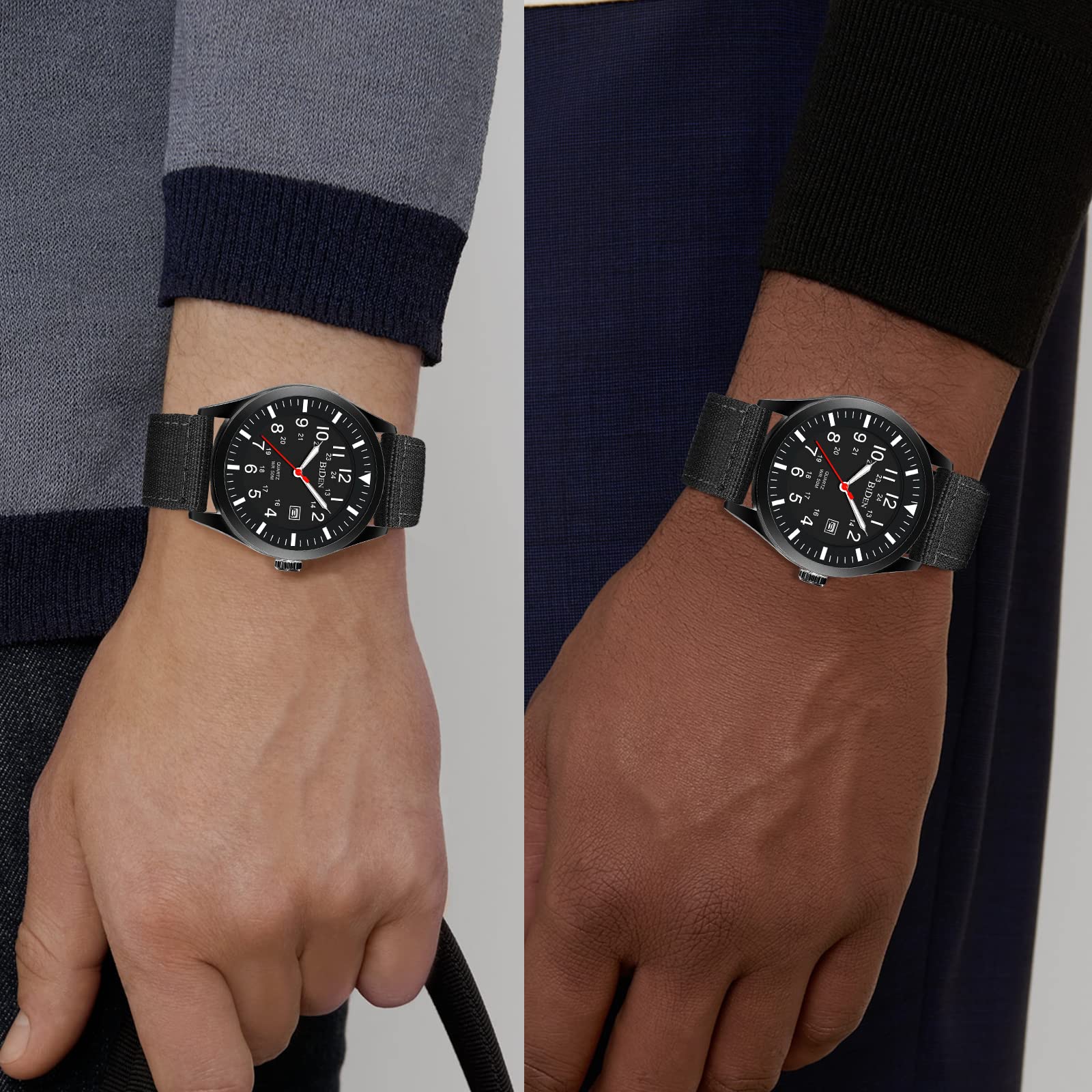 HANPOSH Mens Watches Military Army Analog Quartz Sports Waterproof Wrist Watch for Men with Date Display Nylon Strap Tactical Field