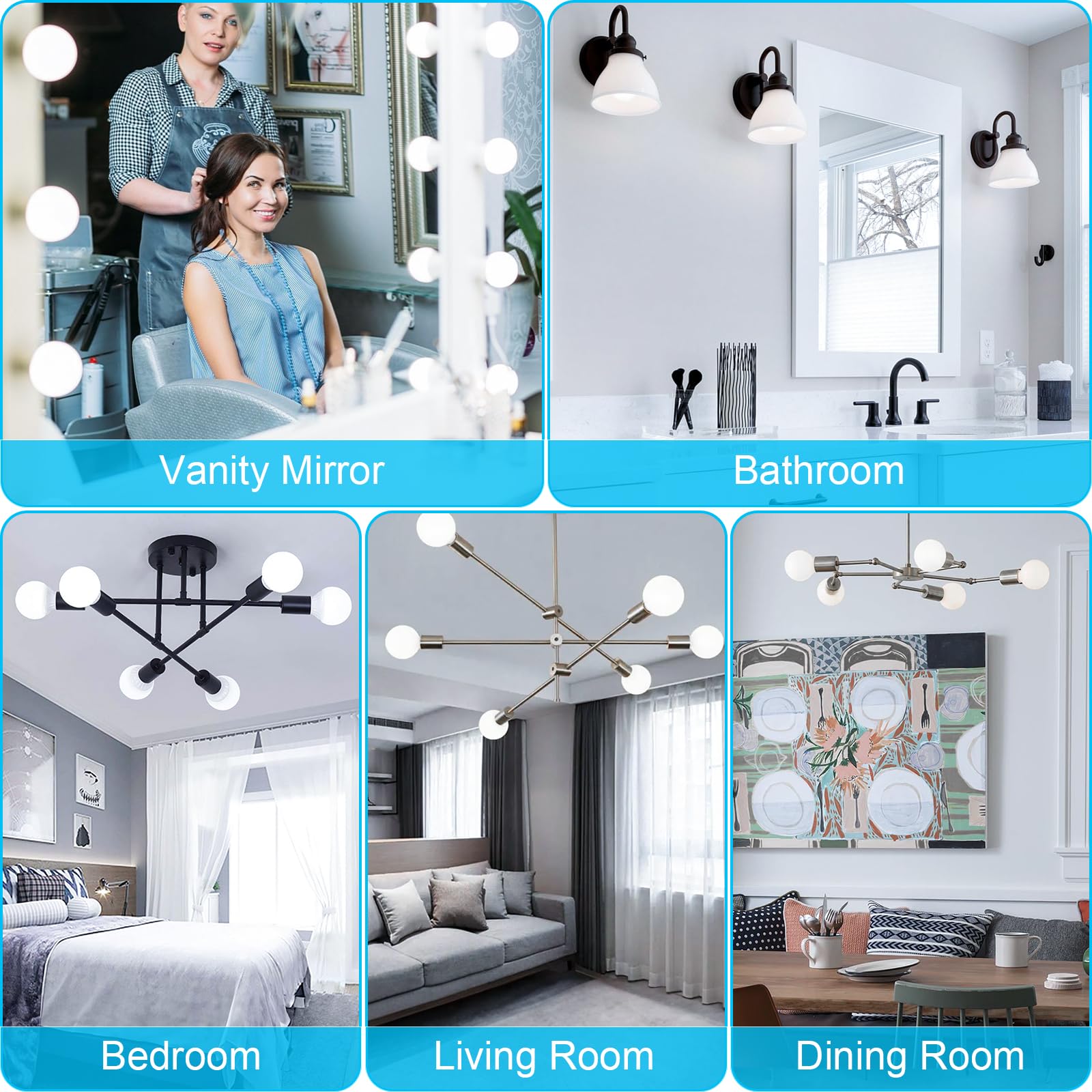 • Eye-protection And No Flicker: Enjoy the uniform light without any flicker, which is helpful to protect your eyesight since you may get close to the vanity mirror light when making up. What makes flicker-free so essential is that you can avoid unnecessary headaches and vertigo during using. A round light bulb with an E26 standard medium base is great choice to be used in the bathroom, dressing room, kitchen, office, or hotel.