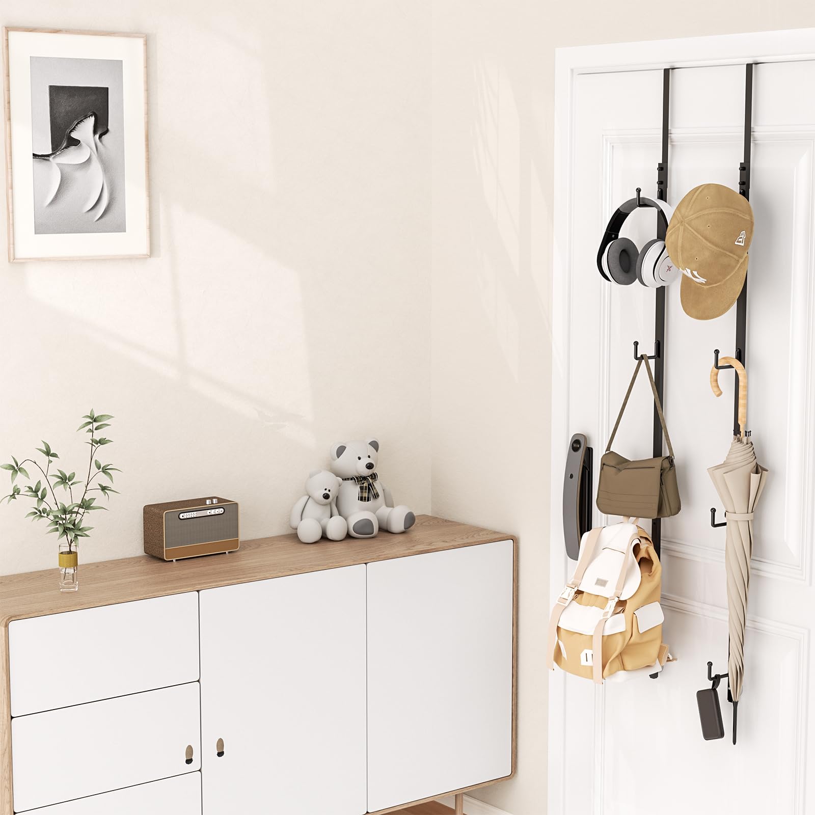 • [Strong and Durable]: The HapiRm hat rack for door is built with high-quality materials for superior strength and durability. Unlike flimsy hat organizer on the market, our design ensures long-lasting use, keeping your hats secure and well-organized on a reliable hat rack