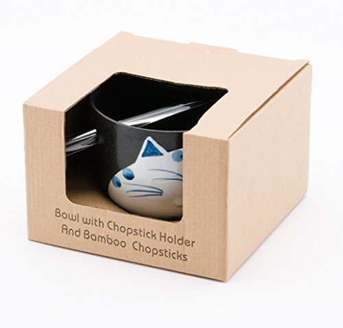Details: Happy Sales HSRB-CATBLK, Japanese Ramen Udon Noodle Bowl with Chopsticks Gift Set, Smiley Cat Black.