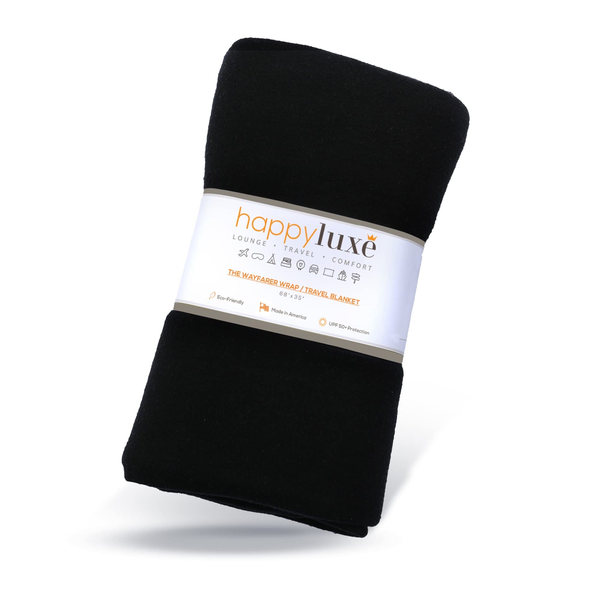 Happyluxe Travel Shawl Wraps for Women - 68x35in Black Wrap. Lightweight UPF50+ Pashmina, Airplane Travel Blanket Scarf