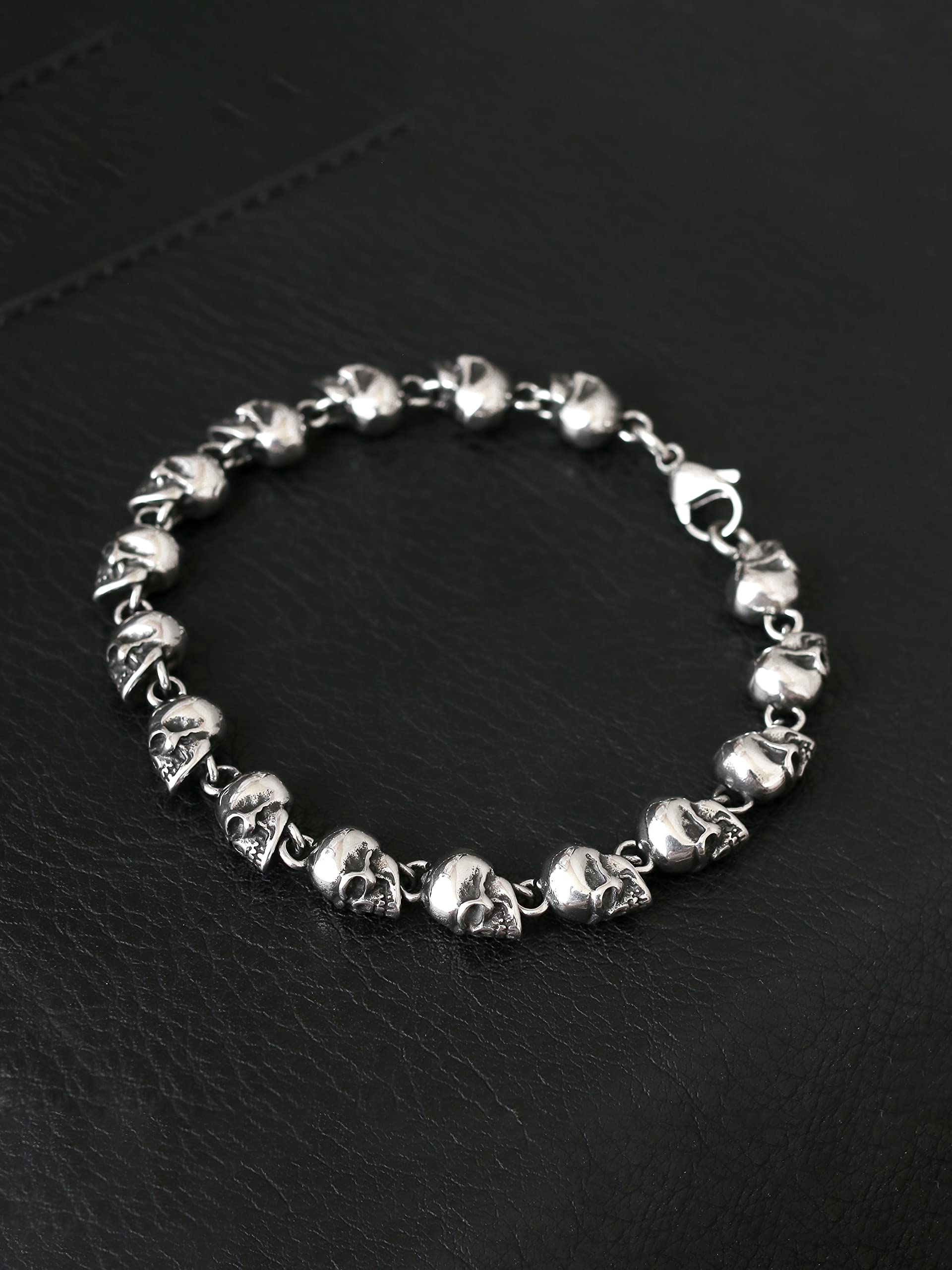 • BOLD DESIGN: Wicked cool bracelet features 14 highly detailed skull beads linked together, symbolizing resilience that gives the daring man the ability to bravely withstand whatever life throws at him