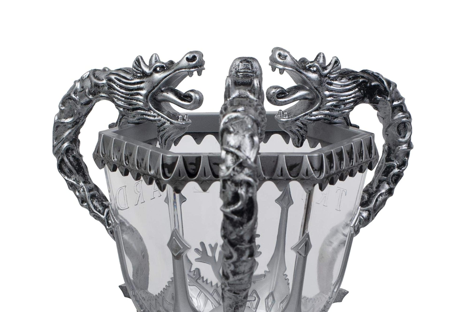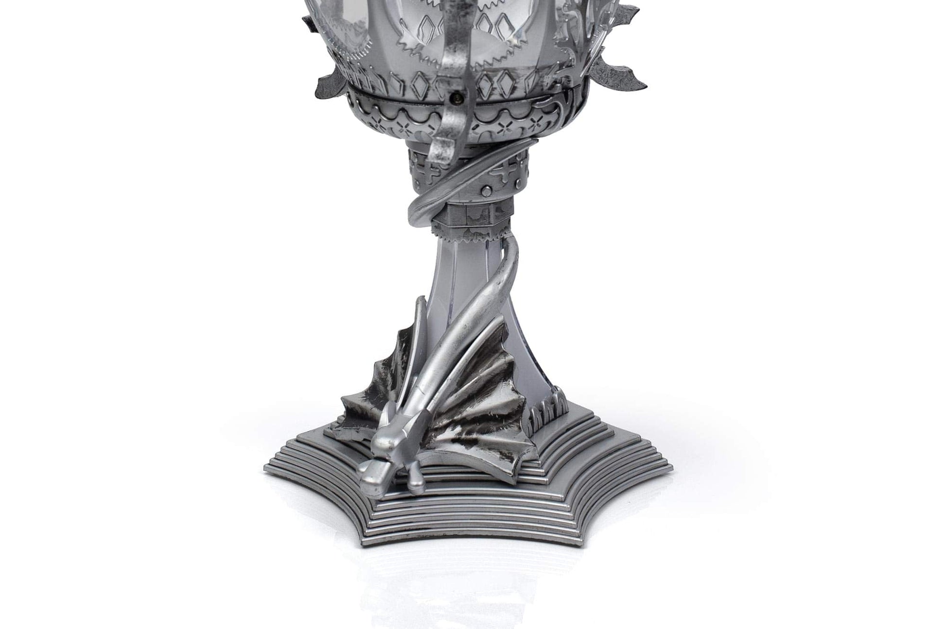 • This replica of the Triwizard Cup from Harry Potter and the Goblet of Fire measures over a foot tall! Both the base and the cup light up with LED bulbs powered by batteries so you can take it with you wherever you venture; It's a great decoration for a Harry Potter viewing party or birthday gift; Even unlit it makes a great display collectible for the HP fan