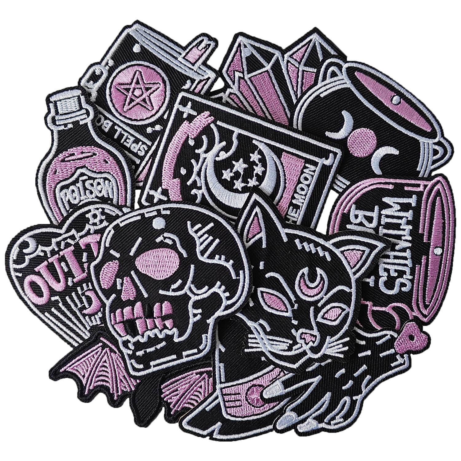 Harsgs Halloween Iron on Patches, Embroidered Iron on/Sew on Patches Halloween Themed Applique for Clothes, Dress, Hat, Jeans, DIY Accessories, Pack of 12