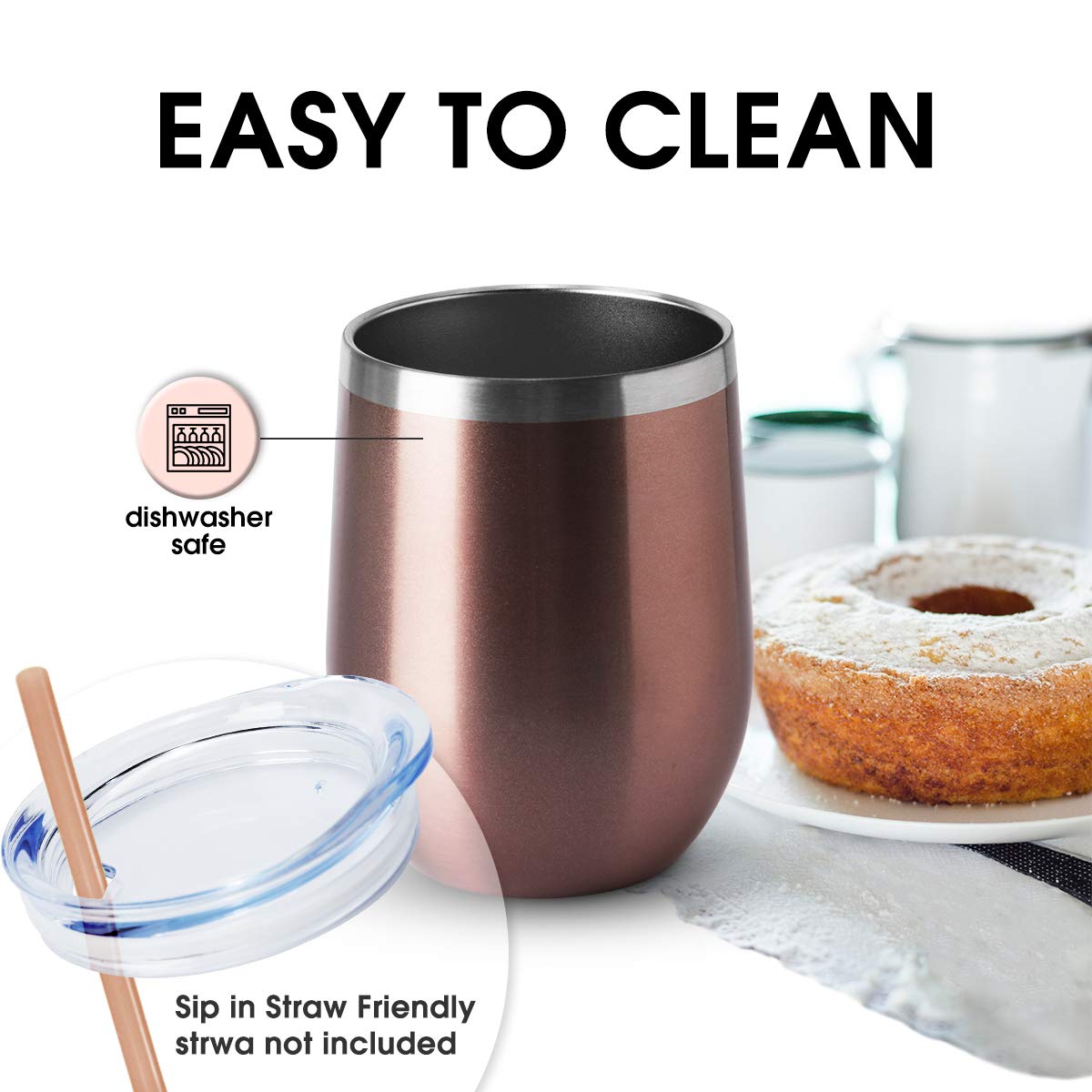 HASLE OUTFITTERS 12oz Wine Tumbler with Lid Stemless Wine Glasses Double Wall Vacuum Travel Mugs stainless steel Coffee Cup for Cold & Hot Drinks Wine Coffee Cocktails Beer 6 Pack Rose Gold