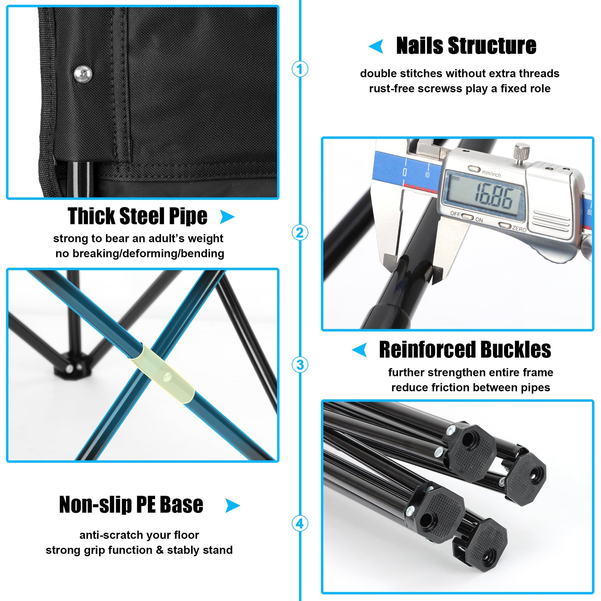 • [Solid Construction] - Weight capacity reaches to 275 pounds without falling apart, Double-layer of fabric and stitches ensure seat cushion will not sag even after prolonged use, Steel pipes up to 1mm thick and 16mm diameter, Reinforced tube buckles and washers further improve the stability of entire frame and greatly reduces friction