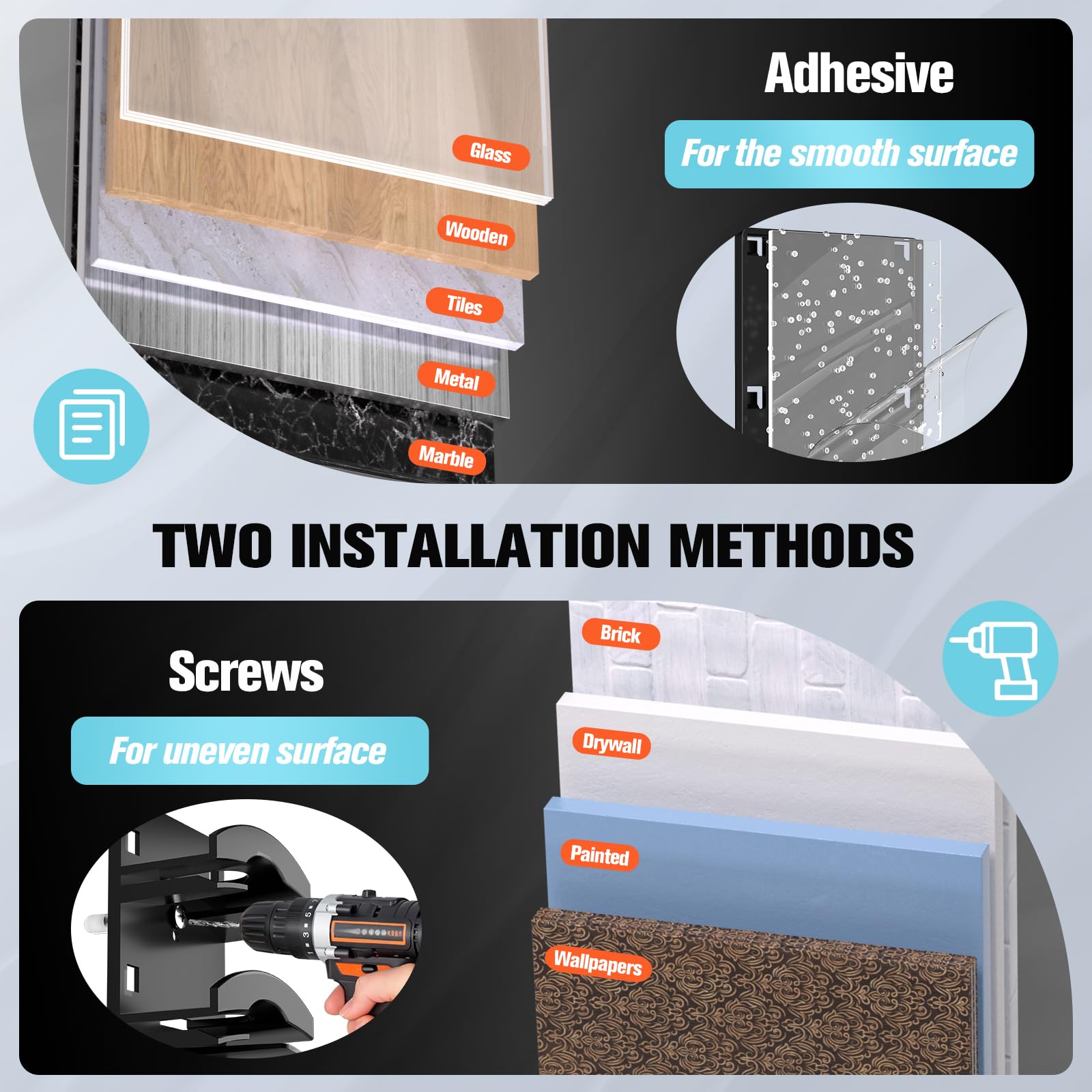 • TWO INSTALLATIONS METHODS: Hat Rack for wall can be installed in two ways: self-adhesive and screw drilled holes. You can choose the appropriate method according to the usage scenario. Note: Due to the firm sticking, please confirm the direction and position before sticking, the part of the wall plate with holes is the top to avoid forming repeated tears