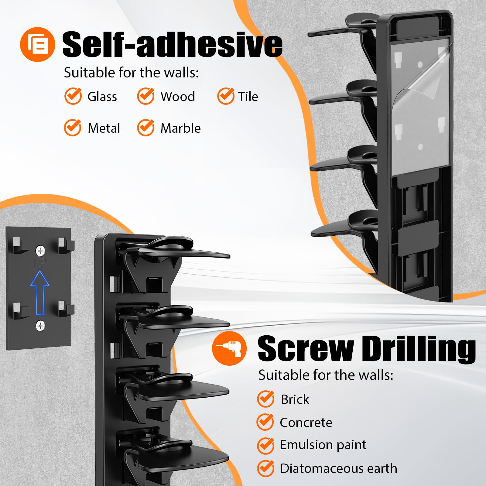 • THE TWO MOUNTING Hat organizers are easy to set up. Hat racks come with a strong adhesive that makes them easy to mount without drilling holes, or you can choose screws if you prefer extra stability. Hat organizer for wall is split and removable, so you can also remove the hat racks to hide them when not in use.