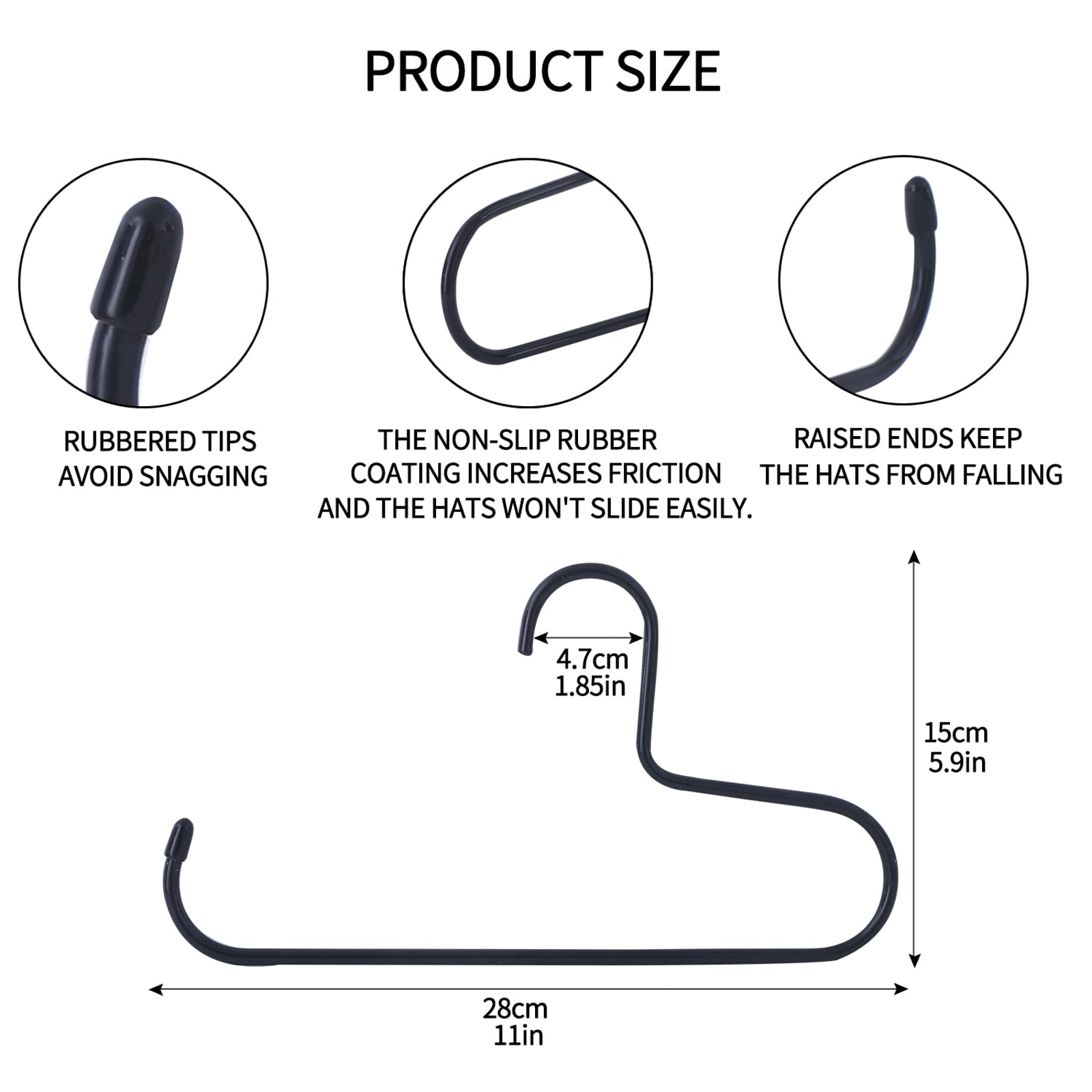 • ✅SLIP-RESISTANT - The baseball hat storage organizer is made of premium metal, has an excellent load-bearing capacity, and is sturdy and long lasting. It features a black non-slip rubber coating and tail-up design at the end which can enhance stability and prevent the hats from falling off,The baseball hat rack will be effectively organizing and displaying your hats.
