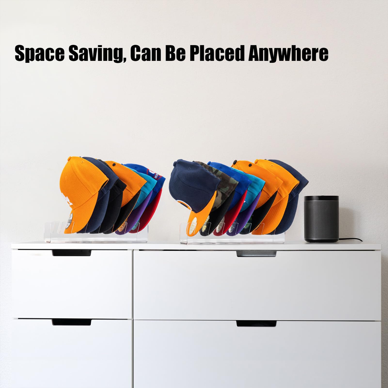 Hat Stand for Baseball Caps, 2 Pack No Install Acrylic Hat Organizer for 14 Baseball Caps Storage Organizer, Hat Racks Hat Holder Display and Organization for Closet, Bedroom, Dresser (Clear-2Pack)