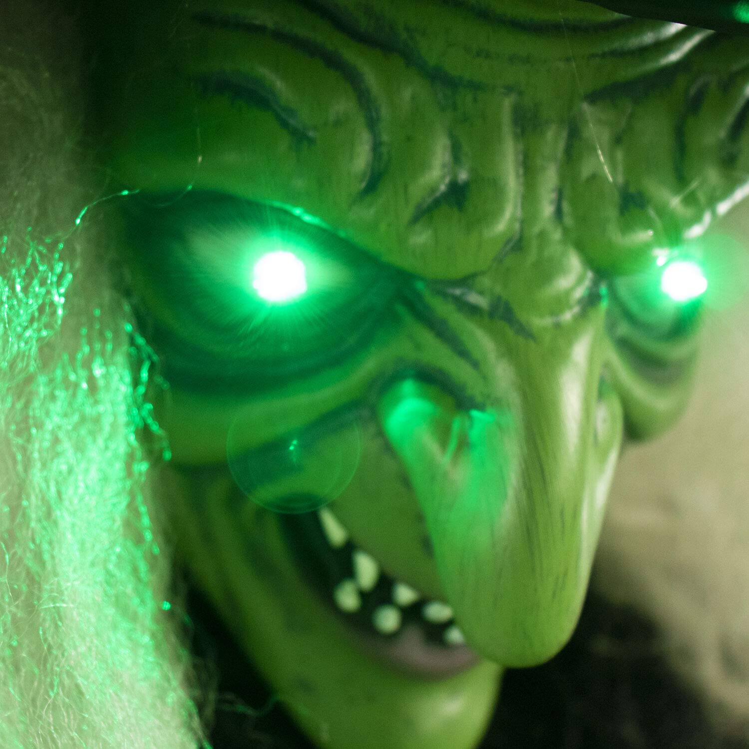 Lights up and is Poseable: Witch's eyes flash green while you pose her arms in any position you choose